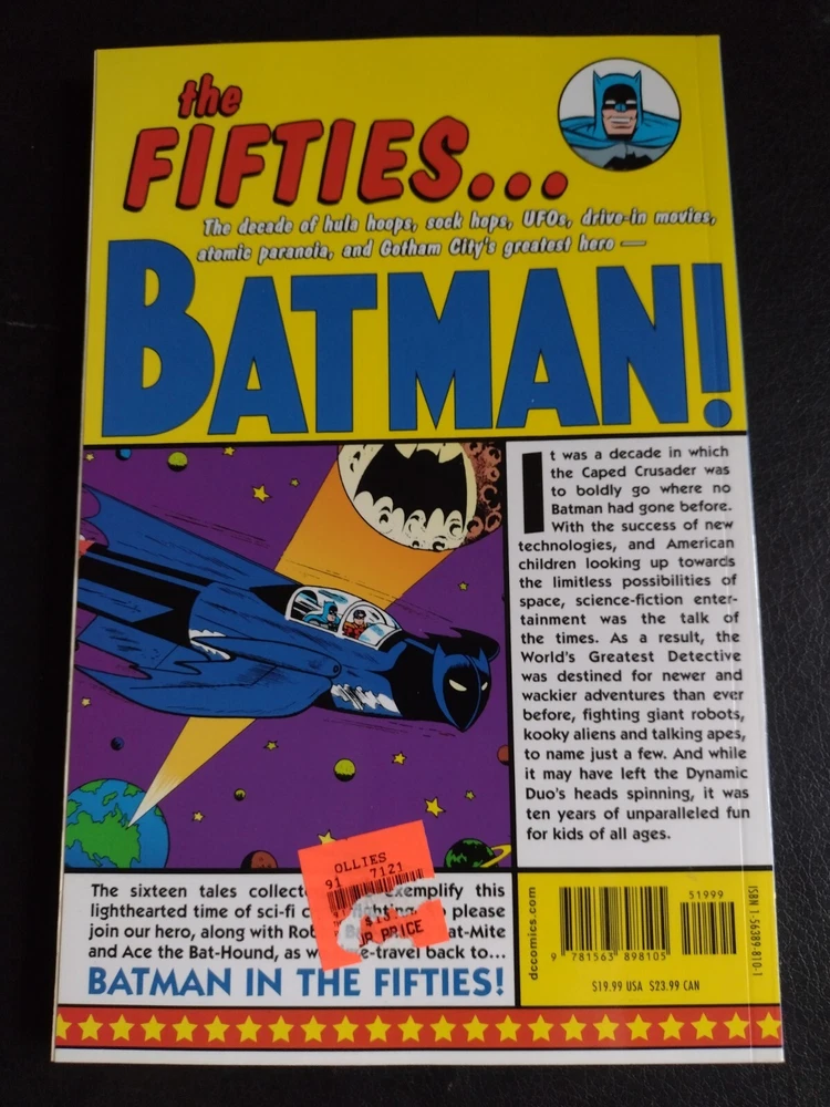 Immerse yourself in the thrilling world of Gotham with the rare collectible "Batman: In The Fifties," a softcover trade paperback that brings the Dark Knight's storied past to life. Published in 2002 by DC Comics, this first print edition is a must-have for enthusiasts and collectors alike, featuring the classic storytelling of Michael Uslan and the rich artwork that captures the essence of the Batman legend. This volume, a jewel for fans of the modern age of comics, is presented in English and intended for a general audience. Although the cover artist remains unknown, the book's allure is undiminished, making it a standout addition to any collection. Discover the adventures that await in this hard-to-find piece of the DC Universe, a single unit offering that promises to be a centerpiece of your comic library.