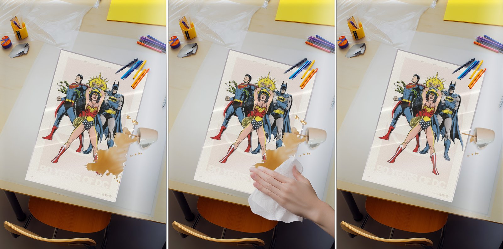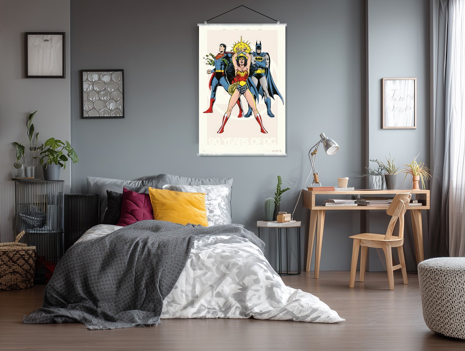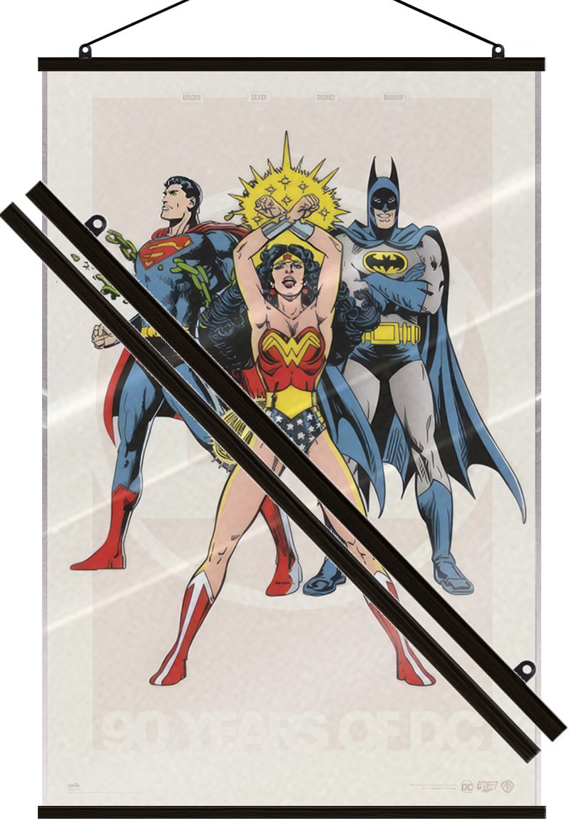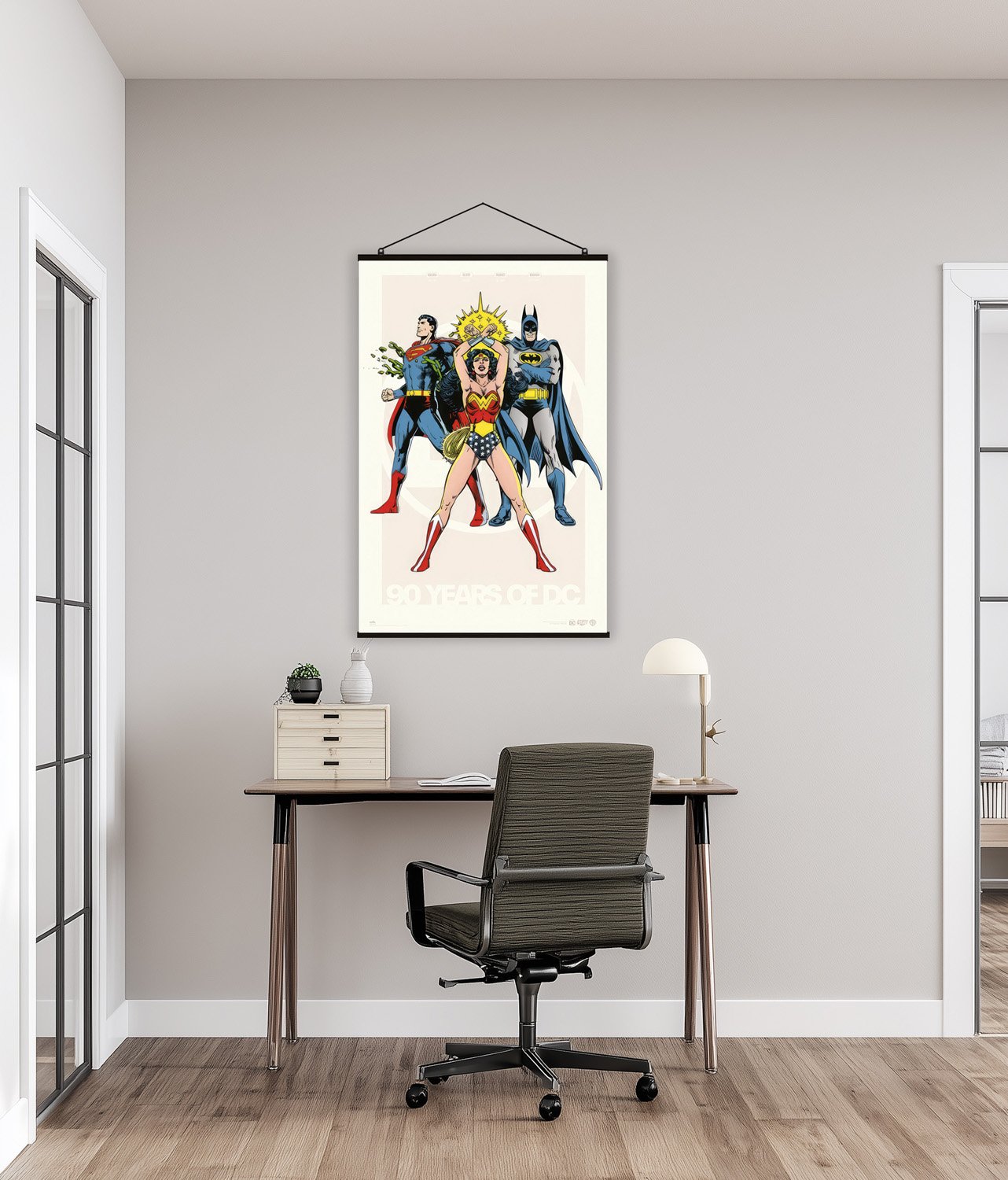 Enhance and protect your favorite DC Comics 90th Anniversary poster with our premium laminated finish, designed to make every detail stand out. The glossy laminate coating brings your DC Comics 90th Anniversary poster to life, making the colors pop with added depth, definition, and a brilliant shine that catches the eye. More than just great looks, this laminated version offers lasting durability. The protective layer makes your poster fade-resistant, preserving its bright, vivid colors for years to come. It’s also spill-resistant and easy to wipe clean, keeping your poster looking flawless even in busy environments. Whether for home, office, family room, game room, home theater, bedroom or a man-cave, lamination is the perfect way to extend the life of your poster, combining long-lasting protection with a sleek, high-quality finish. The poster is printed on high quality paper and measures 24 x 36 inches.