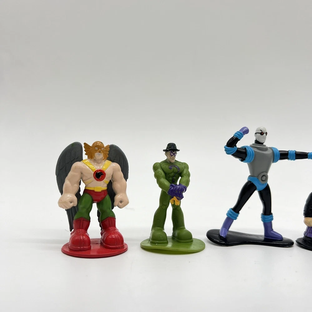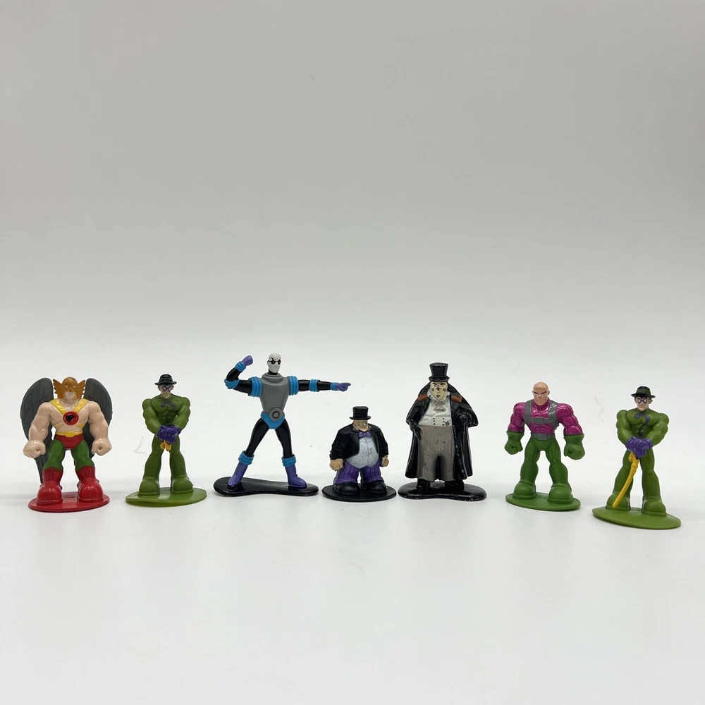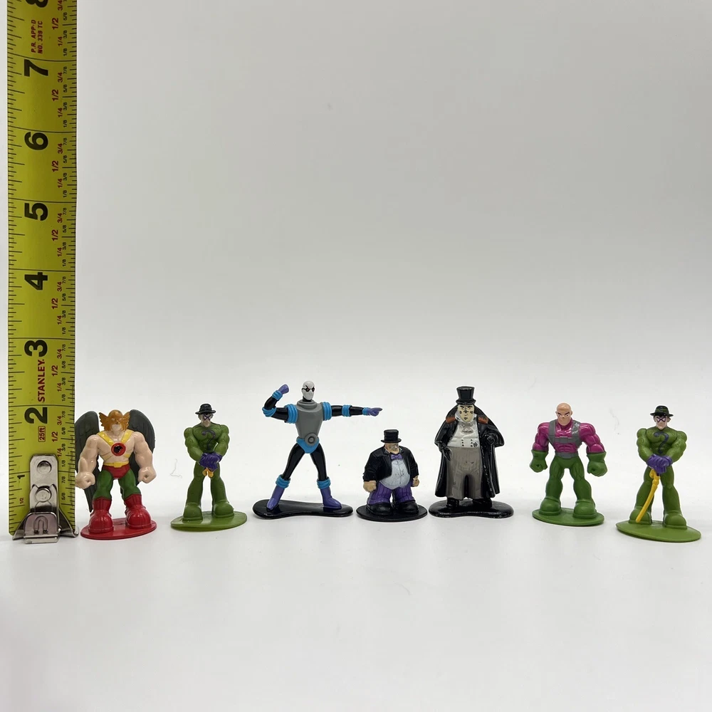 Get your hands on this incredible DC Comics Mini Toy Lot of 7 Cake Toppers featuring your favorite villain, Penguin, and his nemesis, the Riddler. Made of high-quality plastic and metal, these action figures will stand the test of time and bring joy to any collector or fan of DC Comics. Assembled with attention to detail and featuring Cake as the featured person/artist, this set is a must-have for any toy or comic book enthusiast. Add it to your collection today! Since this is a used item, it may have minor signs of wear, please see pictures for condition.