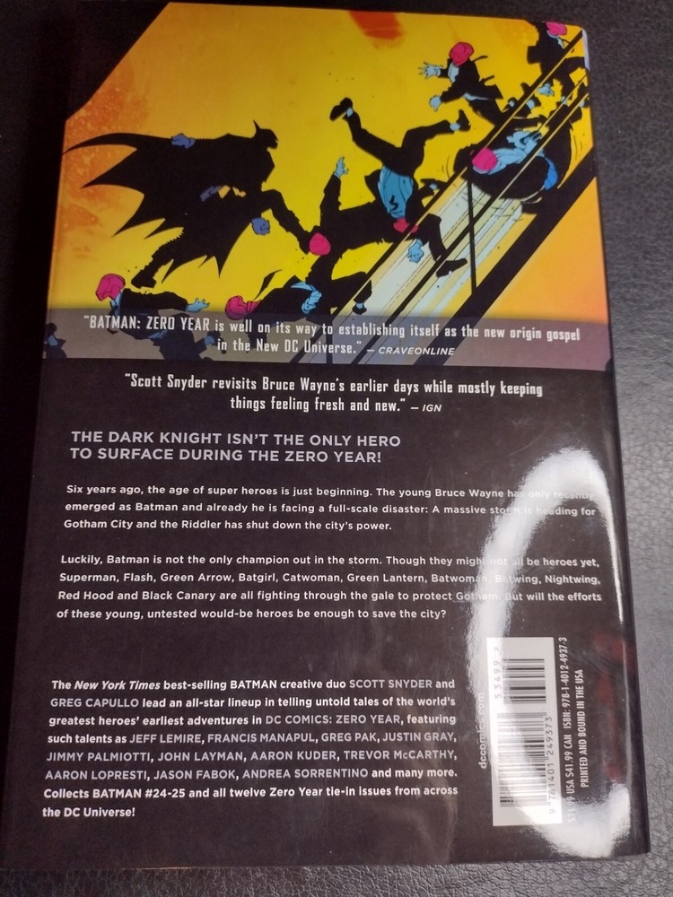 Publisher:DC ComicsArtist/Writer:Jimmy Palmiotti, Jay Leisten, Jeff Lemire, Francis Manapul, Rafael Albuquerque, Brian Buccellato, Arif Prianto, Andrea Mutti, Vicente Cifuentes, Trevor Mccarthy, Jeremy Haun, Andy Clarke, Aaron Kuder, Jason Fabok, Juan Castro, Robert Venditti, Jim Fern, Chris Sprouse, Matt Hollingsworth, Eduardo Pansica, Aaron Lopresti, Greg Capullo, Marguerite Bennett, Marc Andreyko, Rob Lean, Garry Henderson, Tom Nguyen, Danny Miki, Sonia Oback, Will Conrad, Paul Mounts, Bill Sienkiewicz, Tomeu Morey, Denys Cowan, Pete Pantazis, Daniel Sampere, Greg Pak, Dave McCaig, Ivan Fernandez, Jonathan Glapion, Christy Marx, Guy Major, Karl Story, Cliff Richards, Art Thibert, Fernando Pasarin, Scott McDaniel, Romano Molenaar, Andrea Sorrentino, John Kalisz, John Layman, Allan Jefferson, Scott Snyder, Justin Gray, Travis Moore, Patrick Olliffe, Van Jensen, Júlio Ferreira, Keith Champagne, Chris Sotomayor, Marcelo Maiolo, Blond, Fco Plascencia, Vic Drujiniu, Kyle Higgins, James Tynion IVTradition:US ComicsLanguage:EnglishGenre:SuperheroesCharacter:Commissioner Loeb, Marcus Row, Batman (Bruce Wayne), Charlie (villain), Colonel Jake Kane, Gene, Dr. Death (Dr. Karl Helfern) (villain), Shirley Stewart, Spencer (villain), Basil Karlo, Mr. Archuleta, Lt. Tasker, Lucius Fox, Ra's Al Ghul (Villain), Amygdala (Aaron Helzinger) (villain), Barbara Gordon, Sal Maroni (villain), Red Hood Three-Forty-Seven (Philip Kane) (death)), Officer Harvey Bullock, Selina Kyle, Mary Grayson, Officer Frankie, Officer Ramirez, Kate Kane, Officer Valdez, The Supremacists (villains), Jason Todd, Dr. Pamela Isley, Anarky (villain), Officer Kiviat, Red Hood Sixty-Seven (villain), Thomas Wayne (flashback, corpse), Josh, Russell Tavaroff (first appearance, flashback), Raya Vestri, Red Hood Fifty-Four (villain), The Untitled (villain, death), Harvey Bullock, Lola MacIntire, Sgt. John Stewart, Talia Al Ghul (Villain), Green Arrow (Oliver Queen), Jana, Mrs. Todd, Red Hood Gang (Red Hood One (villain), Commissioner Gillian Loeb, Calvin Summer, C.C. Haly, Mr. Torres, Barry Allen, Martha Wayne (flashback, corpse), Black Mask Gang (villains), Taz, Liam Distal (corpse), Bob, Luke Fox, Chris, Officer Mueller, Lt. Zachary Henshaw (villain, death), Dr. Kelver (flashback, corpse), Killer Moth (villain), Officer Thomas, Batwing (Luke Fox), Red Hood Gang (villains), Officer Peters, Kal-El), Leopold, James Gordon, Cullen Row, Raymond, Oswald Cobblepot, Maggie Sawyer, James Gordon, Jr., Dick Grayson, Arnett Crocker (villain), Tanya Fox, Lt. James Gordon, Black Mask (Roman Sionis) (villain), Dr. Paji (corpse), Alfred Pennyworth, Officer Larson, Officer Francis Laney (villain, death), Superman (Clark Kent), Lana Lang, Harper Row, Henry, John Stewart, Joker (formerly Red Hood One) (villain), Bette Kane, Riddler (Edward Nygma) (Villain), John Grayson, Officer Wilkins, Mr. Vickers, Officer Davison, C.J. Maroni, Iris West, Flash (Barry Allen)Cover Artist:VariousSeries Title:DC Comics: Zero YearEra:Modern Age (1992-Now)Publication Year:2014