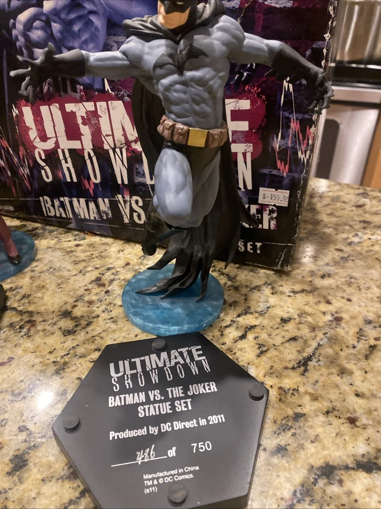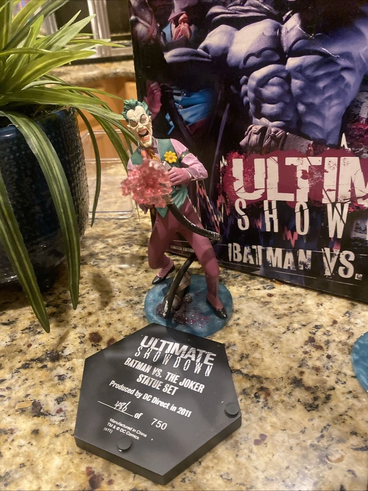 Immerse yourself in the world of Gotham with the DC Direct Ultimate Showdown Batman vs Joker Statue. This collectible captures the iconic clash between the Dynamic Duo and the Clown Prince of Crime in exquisite detail. The statue is a must-have for fans of the franchise, bringing a piece of the Batman saga into your home. Expertly crafted, this piece features the Joker in his menacing attire from the 'Joker' movie, set to pose perfectly alongside Batman. Whether you're a seasoned collector or new to the realm of comic book memorabilia, this non-modified, high-quality statue from DC Direct is a standout addition to any collection.