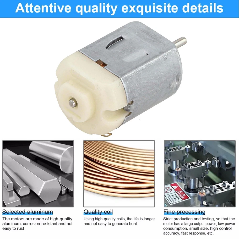 DC Motor 130 Model 1 to 6V Silver with 2mm Shaft for Airplane Projects DESCRIPTION Features: * Small DC motor to 6V. * Speed can be controlled using PWM (Pulse Width Modulation). Power transistors must be used to control the motor. * volt minimum, 6 volt maximum. * 5V current: 400 mA no load, .7 minutes stall (stalling time should not exceed a few seconds at 5V). When running from an external power supply, 5V at 2A can be supplied to run of the motors. Otherwise a separate 5V power supply is required. Operates properly with two AA batteries. : DC small motor Specifications: Part name: DC small motor Model: 130 Material: Metal + Plastic Color: Silver No-load speed: 2000 - 12000 rpm Voltage: - 6V Commutation: Brushless Size: Shaft length: 8mm Shaft diameter: 2mm Reference current: 0.35-0.4A Application: Connecting spindle gears and propellers, model cars, airplanes, etc. Package Contents: x DC motor Note: .The real color of the item may be slightly different from the pictures shown on website caused by many factors such as brightness of your monitor and light brightness. 2.Please allow slight manual measurement deviation for the data. POLICES Shipping Payment WARRANTY We only ship to confirmed ebay Order addresses. Please comfirm that your Order address is in line with your shipping address. Please kindly note that the c ombined shipping is not provided because the shipping fee is calculated by weight. Also, the each additional item means exactly the the same color and size. It takes about 7 -15 working days to US; about 10-30 working days to other countries. Transit time may be a little delayed because of the bad weather and customs inspection . If you do not receive your item within 30 working days since payment finished, please contact us immediately for further assistance. Payment must be completed within 5 days. If you have any problems about payment, please contact us via ebay message. We strive for 100% customer satisfaction! Positive Feedback is very important to us. If you have any questions, p lease feel free to contact us via "Ask seller a question" . We will reply your email within 24 working hours. On Dec 2, 2024 at 16:49:48 PST, seller added the following information: