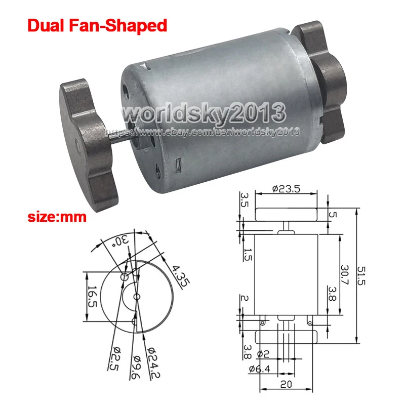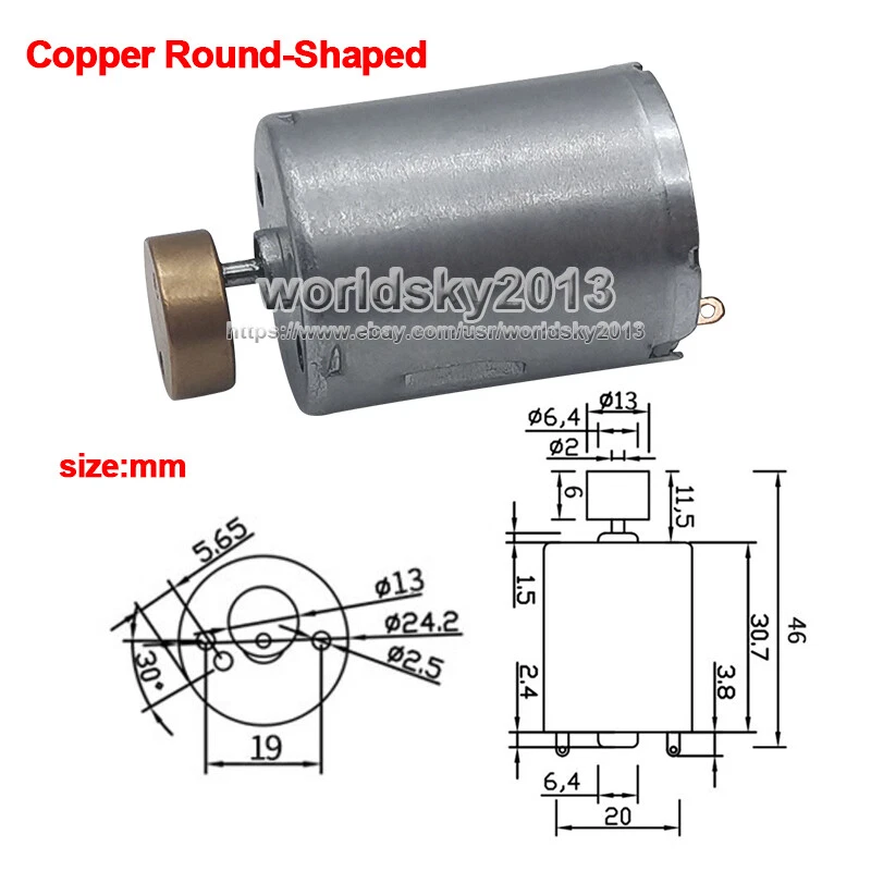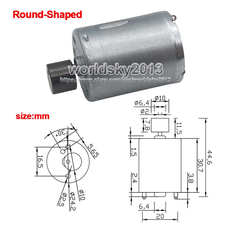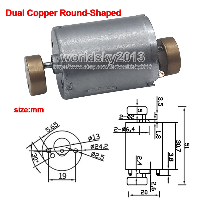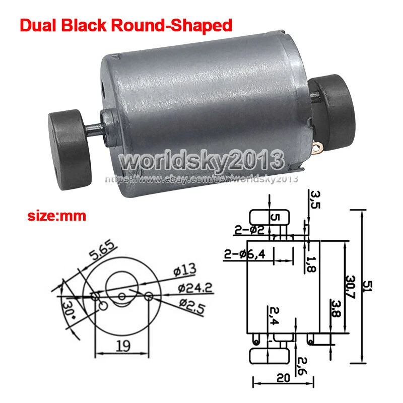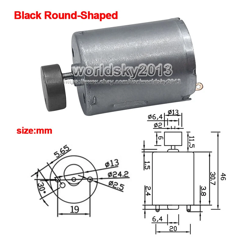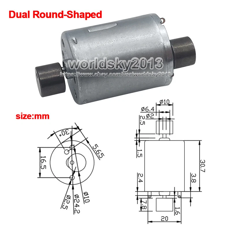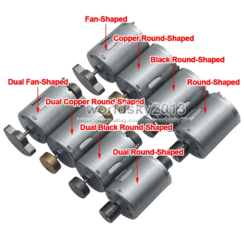 ☆ Welcome ☆ to ☆ our ☆ store ☆ Description 1pcs DC6V 12V 24V RC370 Vibrator Vibrating Vibration Motor for Massager Toy Car Model Specification: Vibrating Head Type: Fan-Shaped, Dual Fan-Shaped, Round-Shaped, Dual Round-Shaped, Copper Round-Shaped, Dual Copper Round-Shaped, Black Round-Shaped, Dual Black Round-Shaped Micro motors are widely used in power equipment for miniaturization and automatic mechanical equipment. It is suitable for commercial, industrial, mechanical equipment, and can be seen everywhere. Motor Diameter: about 24.2mm Motor Body Length: about 30mm Voltage: DC6V, 12V, 24V No-load Speed: 3000rpm,6000rpm 8500rpm Package Included: Motor x 1 Shipping All items will be shipped to worldwide. All items will only be shipped to the ebay address , so please make sure to provide us with the correct, precise, detailed shipping address at ebay . Customs duty is obligation and liability of a citizen in your country, so the buyer should be responsible for any tax and custom duty incurred. Most of the items will be shipped by China Post / Hongkong Post / Singapore Post . The shipping time as the follow table is just for your reference. (Note: Brazil/Russia/Ukraine/Mexico/Argentina/Colombia/Chile will take much longer time than other countries, so the refund time will be up to 55 days.) Shipping Method Destination Shipping Time Postage China post / Hongkong post / Singapore post Australia 15~35 days Free shipping (weight < 2kg) United Kingdom 15~35 days Canada 20~35 working days Vietnam, Maldives, New Zealand, Japan, Korea South, Austria, Germany, Netherland, France, Finland, Thailand, Denmark, Greece, Switzerland, Portugal, Greece, Belgium, Ireland, Singapore, Norway 20~35 working days South Africa, Bulgaria, Belarus, Cyprus, Croatia, Latvia, Monaco, Moldova, Macedonia, Montenegro, Poland, Romania, Serbia, Slovakia, Slovenia, Ukraine, Brunei Indonesia, Cambodia, Malaysia, Philippines, Vietnam, Maldives 25~45 working days Italy, Brazil, Russia, Israel, and other small countries 35~55 working days EUB USA 7~15 days ----- EMS Most of the countries 5~15 days Contact us DHL / Fedex Australia, France, UK, Germany, USA, and other countries 3~7 days Contact us Payment We only accept payment via PayPal . Payment must be completed within 7 days. Please leave messages for your special requests (e.g Color or Size.) in the paypal notes section when you place the order. Guarantee & Feedback All the items will be tested before shipping. Buy them with the confidence! If the item is defected when you receive it or you are not satisfied with it, you can email us for a replacement or refund, but you have to return the item to us within 7 days.Please contract us and double check the return address before you return it. No accepting to return the electronic components. Full refund when receiving the original item. Notice: Return shipping fee is paid by the buyer. We maintain the excellent service standards and strive for 100% customer satisfaction! Positive feedback is very important to us,so if you have any problem, please do feel free to contact us before leaving us any Neutral or Negative feedback , so that we can satisfactorily address your concerns. Contact Us We strive to provide you with the best service, and we will reply your question within 24 hours. Our greatest goal is to meet the maximum demands of the customers. Business time: 9:30~21:30 (GMT+8) Contact us Your satisfactions are our greatest pursuits!!!