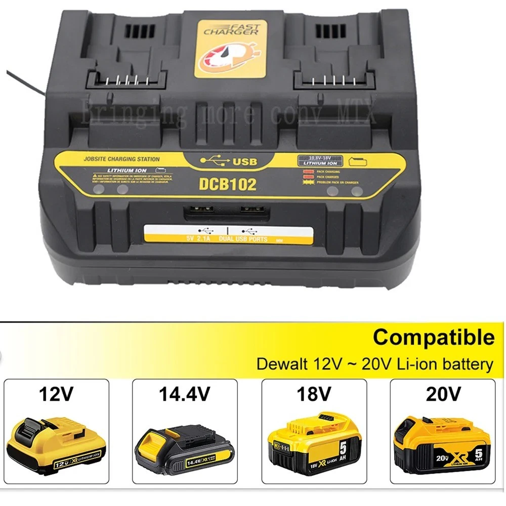 If available stock is too low, please advise the desired quantity. Product Highlights Swipe, compare and decide with confidence. 1 Overview 2 Gallery 3 Details & Specs 4 Support & FAQ Image gallery Tap thumbnails or arrows to switch the view. ‹ › ‹ › ‹ › ‹ › ‹ › ‹ › 1 / 6 2 / 6 3 / 6 4 / 6 5 / 6 6 / 6 Key benefits Why this product stands out Core features in a compact overview – ideal for quick comparison on eBay. Dual USB ports Charge two standard 12V–20V Li‐ion batteries simultaneously. Intelligent quick charge Smart charging with quick-charge support for faster replenishment. Model and package DCB102-NEW; package includes 1× DCB102 USB Dual-Port Battery Charger. At a glance Quick summary Clear & concise Power up 12V–20V Li-ion batteries faster with the DCB102 USB Dual-Port Battery Charger. This intelligent, quick-charge unit provides two USB ports for simultaneous charging and supports USB data transmission, with a total output of 37.5–50 W that adapts to battery voltage for efficient replenishment. Model DCB102-NEW is designed for standard Li-ion batteries and ships as a complete package. The unit includes no display screen, offering a compact, straightforward charging experience. Details & Specs Technical Specifications Mobile-friendly Mobile: stacked view. Desktop: table view. Quick charge Yes Data Transmission USB Intelligent Charge Yes Output Power 37.5-50(include50) Display screen No Type USB Use Standard Battery Model Number DCB102-NEW Package Yes Quick charge Yes Data Transmission USB Intelligent Charge Yes Output Power 37.5-50(include50) Display screen No Type USB Use Standard Battery Model Number DCB102-NEW Package Yes Service & help Our promise, support & FAQs What’s included, service promise and answers to common questions. Included Scope of delivery – what is in the box 1× DCB102 USB Dual-Port Battery Charger Our Service Promise Shipping, delivery window & tracking Efficient logistics: We ship via selected partner warehouses to ensure fast, direct delivery. Shipped from: Ships most likely from CN; in some cases may be fulfilled from another location. Carrier varies; delays possible. Optimized carrier choice: The best carrier is selected dynamically based on the fastest route. Reliable delivery window: The shown delivery time is an overall estimate incl. handling and transit. Transparent tracking: The tracking number is provided as soon as the parcel reaches the distribution center. Frequently Asked Questions (FAQ) Answers to common buyer questions What batteries are compatible with the DCB102 charger? Designed for DeWalt 12V–20V Li‐ion batteries. How fast does it charge? It supports quick charging with intelligent charge management. Does this charger have a display screen? No, it does not have a display screen. What is included in the package and what is the model number? The package includes the charger. Model number: DCB102-NEW. What is the output power specification? Output power is 37.5–50 (up to 50). Structured product overview Designed for mobile & desktop Helpful support section © 2026 WARENGUT. All rights reserved. Item number: 5256805341822773