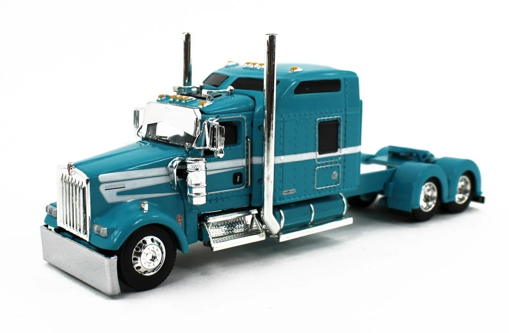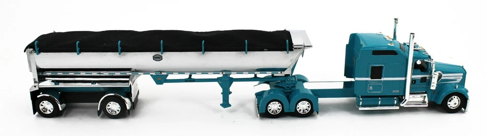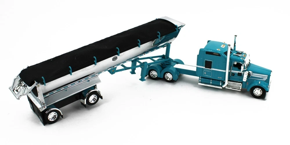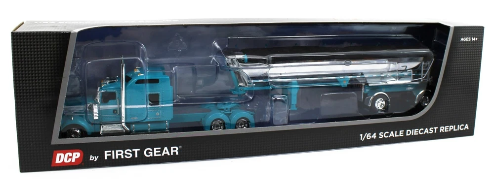 IN STOCK & READY TO SH IP!! DCP by First Gear (#60-1871 ) 1/64 Scale *AQUA BLUE* Kenworth W900L with 86" Studio Sleeper & Spread-Axle Chrome MAC Round End Dump Trailer. Truck Features Show Parts! Texas Bumper, Straight Stacks, Visor, Full Custom Rear Fenders, Rear Light Bar!! A BEAUTFIUL SET!! BRAND NEW IN BOX!