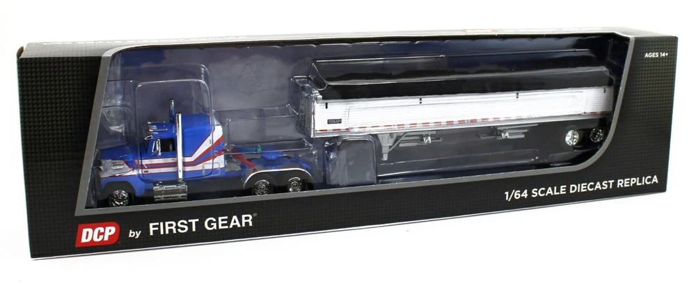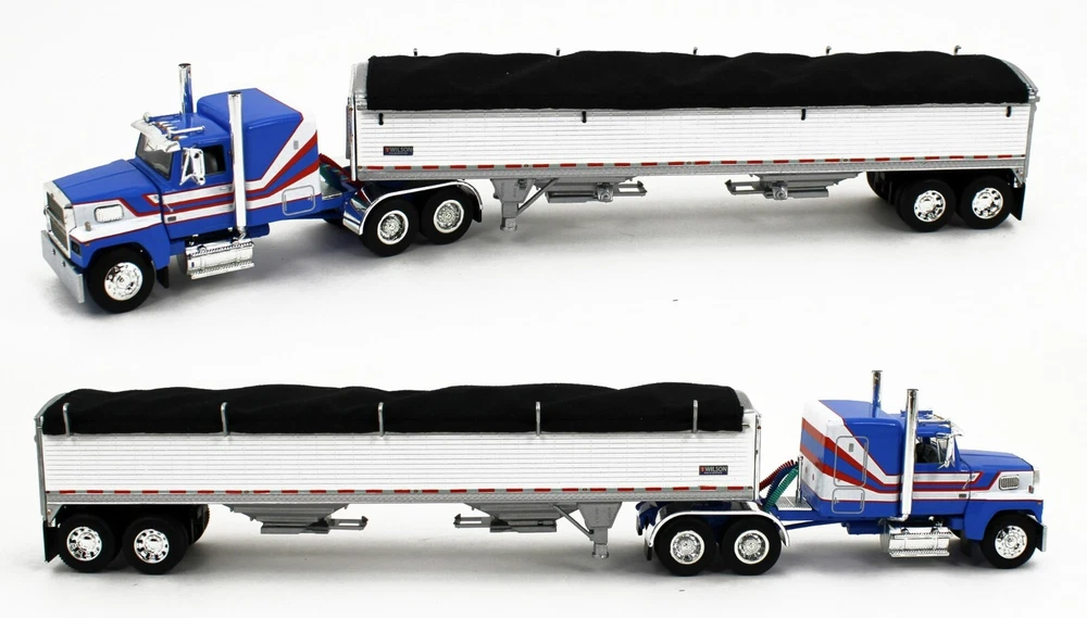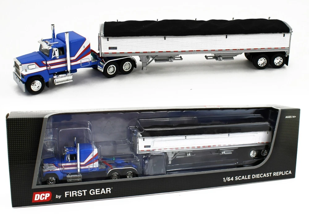 DCP 1:64 *BLUE & WHITE* FORD LTL 9000 Flattop & Wilson Grain Trailer *NIB*