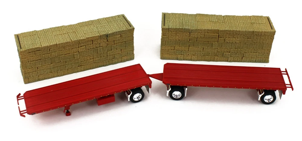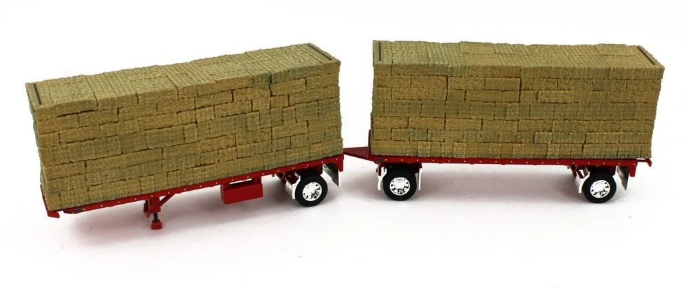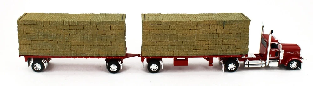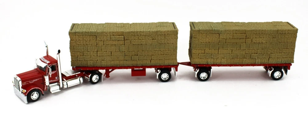 DCP 1:64 *RED* Peterbilt 389 w/Utility Dual 28½’ Hay Flatbed Trailers & Load