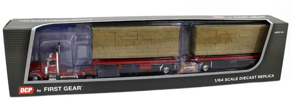 IN STOCK & READY TO SH IP!! DCP by First Gear (#60-1894 ) 1/64 Scale *VIPER RED* Single-Axle Peterbilt 389 Day Cab & Dual 28' Utility Hay Flatbed Trailers with 2 Hay Loads! A BEAUTFIUL SET!! BRAND NEW IN BOX!