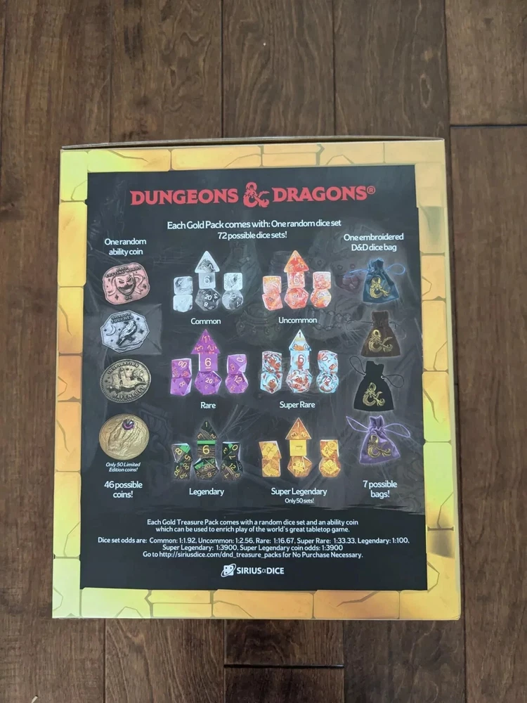 his is for NEW FACTORY SEALED NEW DUNGEONS & DRAGONS D&D Acererak's Treasure Gold Edition Treasure Pack Dice Sets (25 packs) Factory Sealed ..IN HAND ,READY TO SHIP