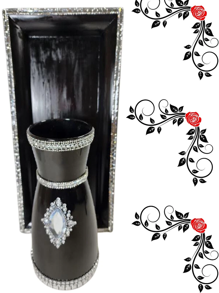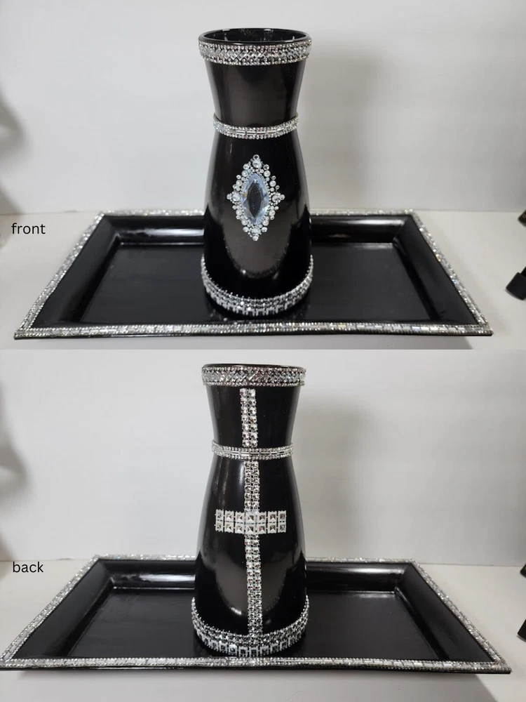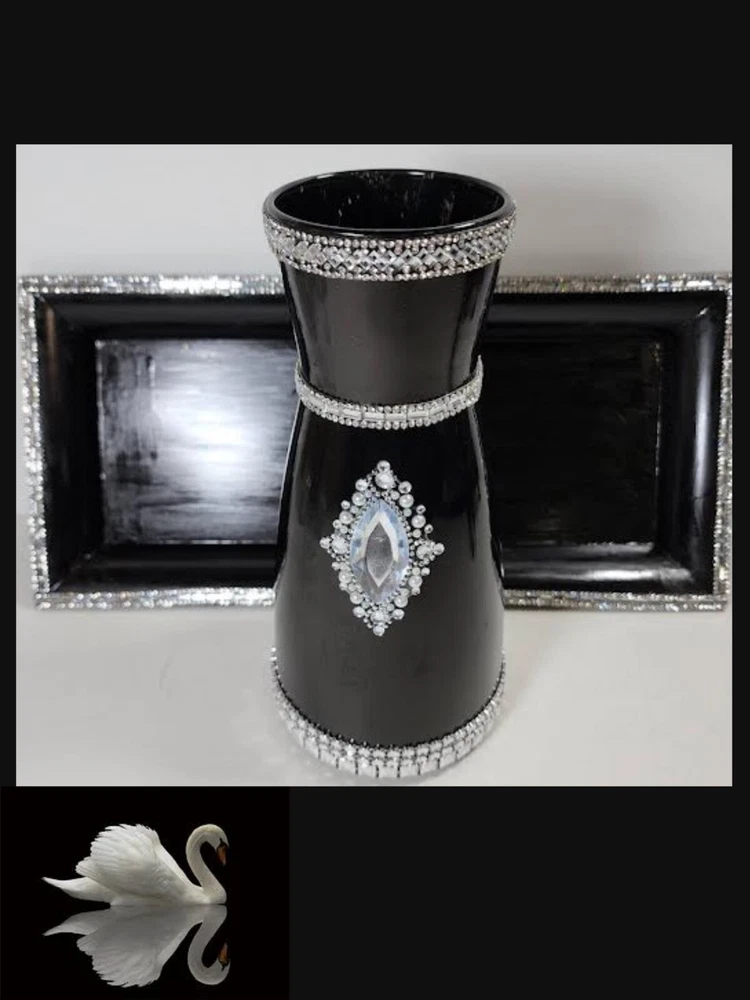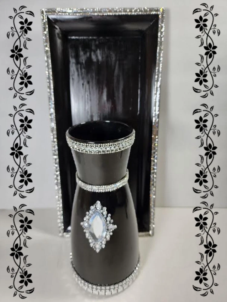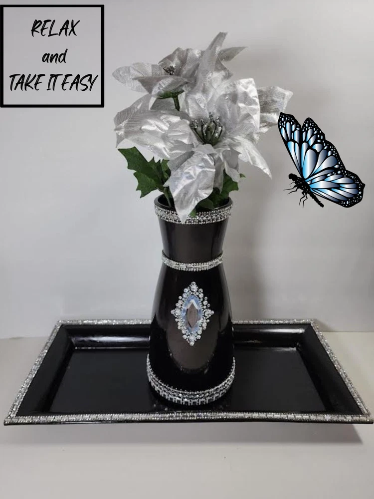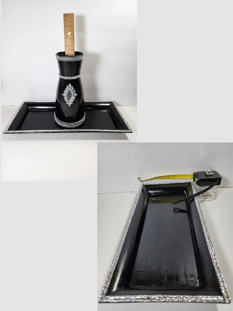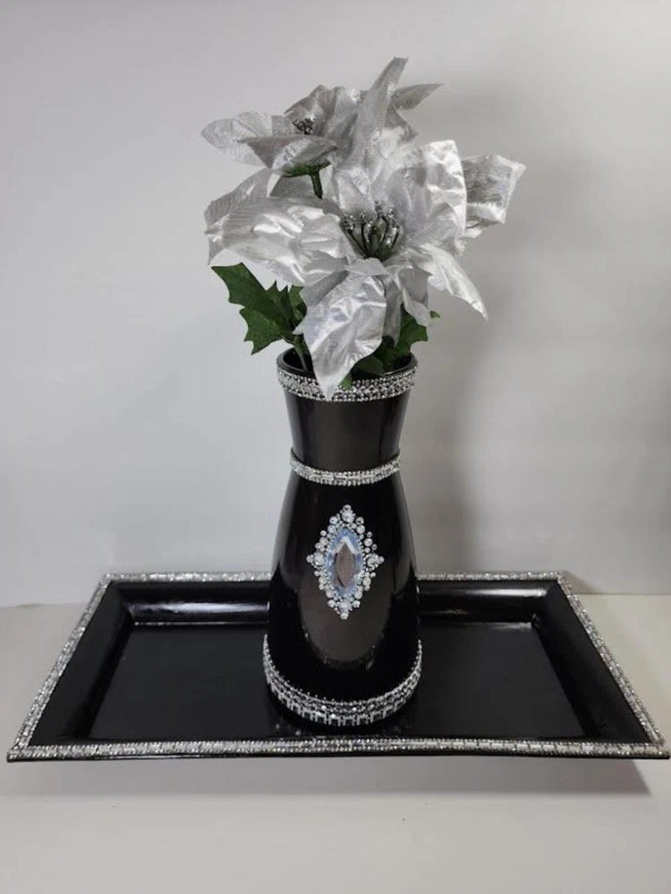 DECOR SPARKLY BLING GLAM CENTERPIECE/VASE WITH TRAY FLOWER HOLDER CANDLE HOLDER. Nice centerpiece, dazzling beautiful centerpiece, sparkly elegant, centerpiece with tray, table piece, art decor craft, home decor items, home accents or candle decoration, plant decor, shop home decor, big flower vase for living room, cute home decor, home decor products, table top decor, indoor plant decor, trendy home decor, inexpensive home decor, Stunning diy wedding reception piece, diy handmade bling entertainment centerpiece, use for floral centerpiece, vase centerpiece with tray, bling glam centerpiece nice for corner stand, centerpiece makes a great bling gift, great for house warming gift, nice for living room or dining room table, can be use as a centerpiece or a vase. GREAT CHRISTMAS GIFT Note: Please view all photos before purchasing.