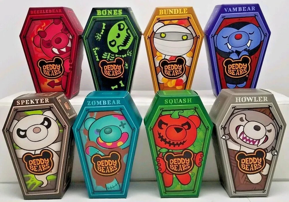 DEDDY BEARS BRAND NEW UNOPENED IN BOX This adorable plush bear is sure to make a great addition to any collection. The bear stands at 5.5 inches tall and comes packaged in its original, unopened coffin. The bear is part of the Deddy Bears collection by INNOV8 CREATIVE ACADEMY LTD, Dublin, Ireland and is an original, licensed reproduction. The bear features intricate details, coffin-shaped packaging. This collector bear is perfect for all occasions and would make a great gift for any bear lover. Don't miss out on the chance to add this unique bear to your collection! COLLECT THEM ALL Choose from: Bundle Beezlebear Vambear Bones Zombear Squash Spekter Howler Each sold separately.