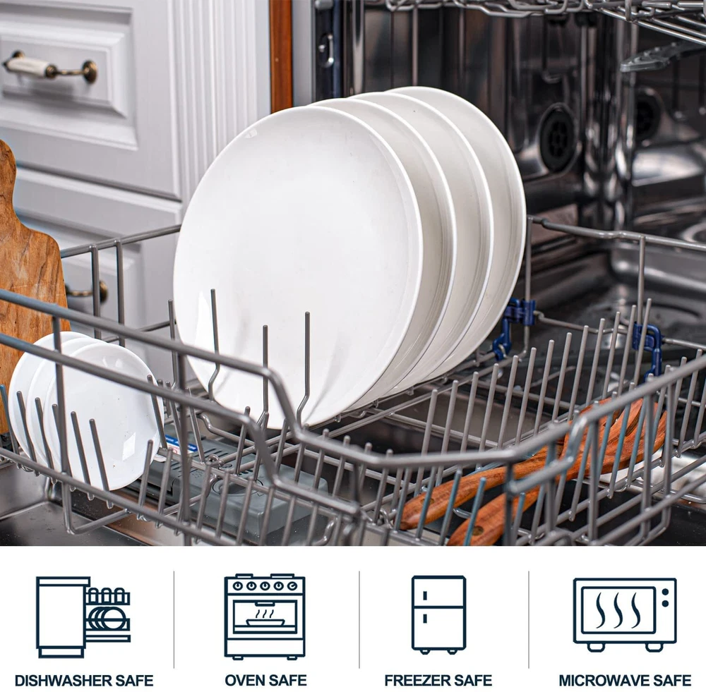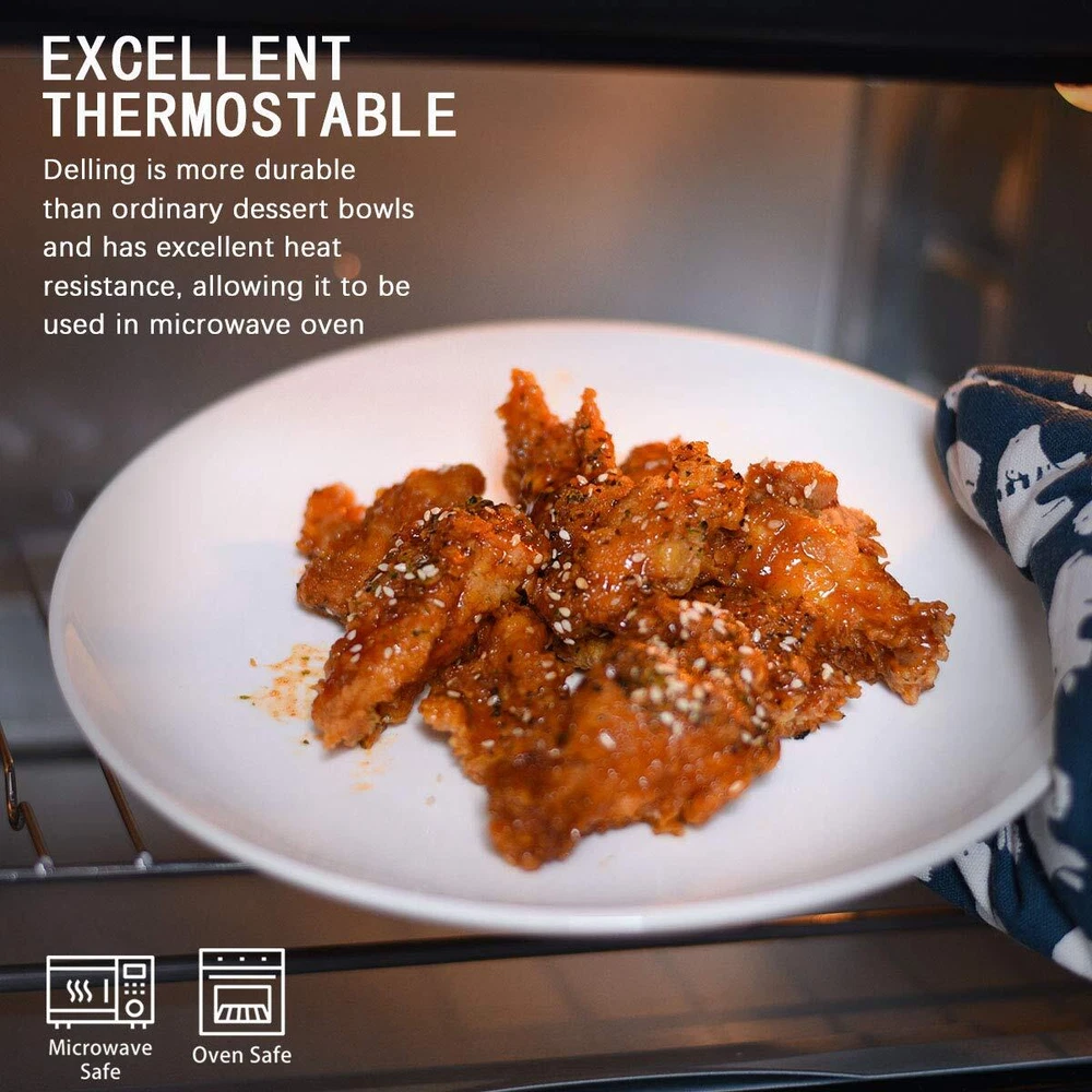Why Do You Choose Delling 10in Dinner Plates? Light Weight Ultra lightweight and extra strength for your convenience Collect Dishes for a complete Set If you want all your dishes to match, our collection has all the pieces. Our tableware makes for a beautiful and complete set Stacks Perfectly Fits in any cabinet, and looks good while doing it Makes a Great Gift Whether it's a gift for yourself or for someone you love, our packaging ensures a beautiful aesthetic the second it arrives at your door ELEGANT WHITE - White dinnerware is perfect for everyday used, as well as more formal occasions. Crisp, bright and classic, this white dinner plates is as versatile as it is timeless. Complement existing kitchen and dining décor, not only delights the guests, but also delights us, who carefully prepare the food. LARGE SIZE & VERSATILE - Delling 10 inch white dinner plates can be used to serve all sorts of meals, comes breakfast, lunch, or dinner. Ideal for main course pasta, salad, dessert, sandwiches and steak, even for foods with soup. They are large enough with a slightly flared rim to prevent food from spilling off the plate. HEALTHY & STURDY - 100% bovine bone china, highly resist chips and cracks. Made of sturdy and durable porcelain, more suitable for long-term use by adults and children. Thickened design, impact resistance, hold more firmly, will not be easily broken. STACKABLE & EASY TO CLEAN - These plates are stackable and don't take up a lot of space in your cupboard. Smooth and easy to clean, you can wash them with soap and hot water or place them into your dishwasher. Dishwasher, microwave, and preheated-oven safe up to 450 degrees. WELL PACKAGED FOR GIFT - In order for you to receive the plates in perfect condition, we will use impact-resistant foam to protect the plates. Don’t hesitate, they also could be a gift for holidays such as Mother's Day, Christmas or Thanksgiving.