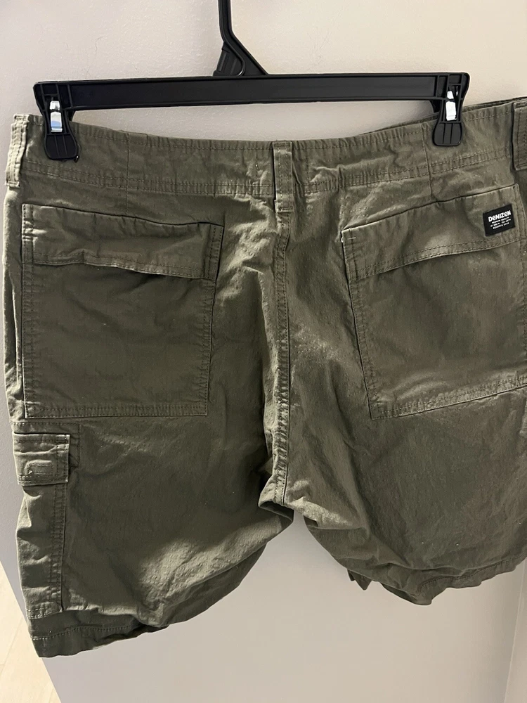 Crafted for comfort and functionality, the DENIZEN from Levi's Men's Flex Lightweight Cargo Shorts are a quintessential addition to your casual wardrobe. These olive green shorts, in size 36, feature a versatile flat front design and a relaxed fit that allows for ease of movement throughout your day. The durable cotton fabric ensures breathability and easy care, making them an ideal choice for the transitional seasons of fall, spring, and summer. Equipped with multiple cargo pockets, this pair offers ample storage for essentials, while the logo accentuates the garment with a touch of brand identity. A medium fabric wash lends a timeless look, and the lightweight construction provides comfort without sacrificing style. Whether you're heading out for a casual outing or just enjoying a leisurely day, these shorts deliver both practicality and effortless style.
