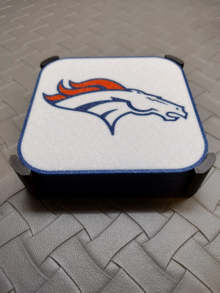 Shape: Square or Rounded Sport: Football-NFL Number of Items in Set: 4 Item Width: 3.5" Item Length: 3.5" Brand: PR!NT3D Color: Multicolor Personalize: No Material: Plastic Occasion: Sports Country/Region of Manufacture: United States Character Family: Sports Theme: American Football Type: Coaster Set