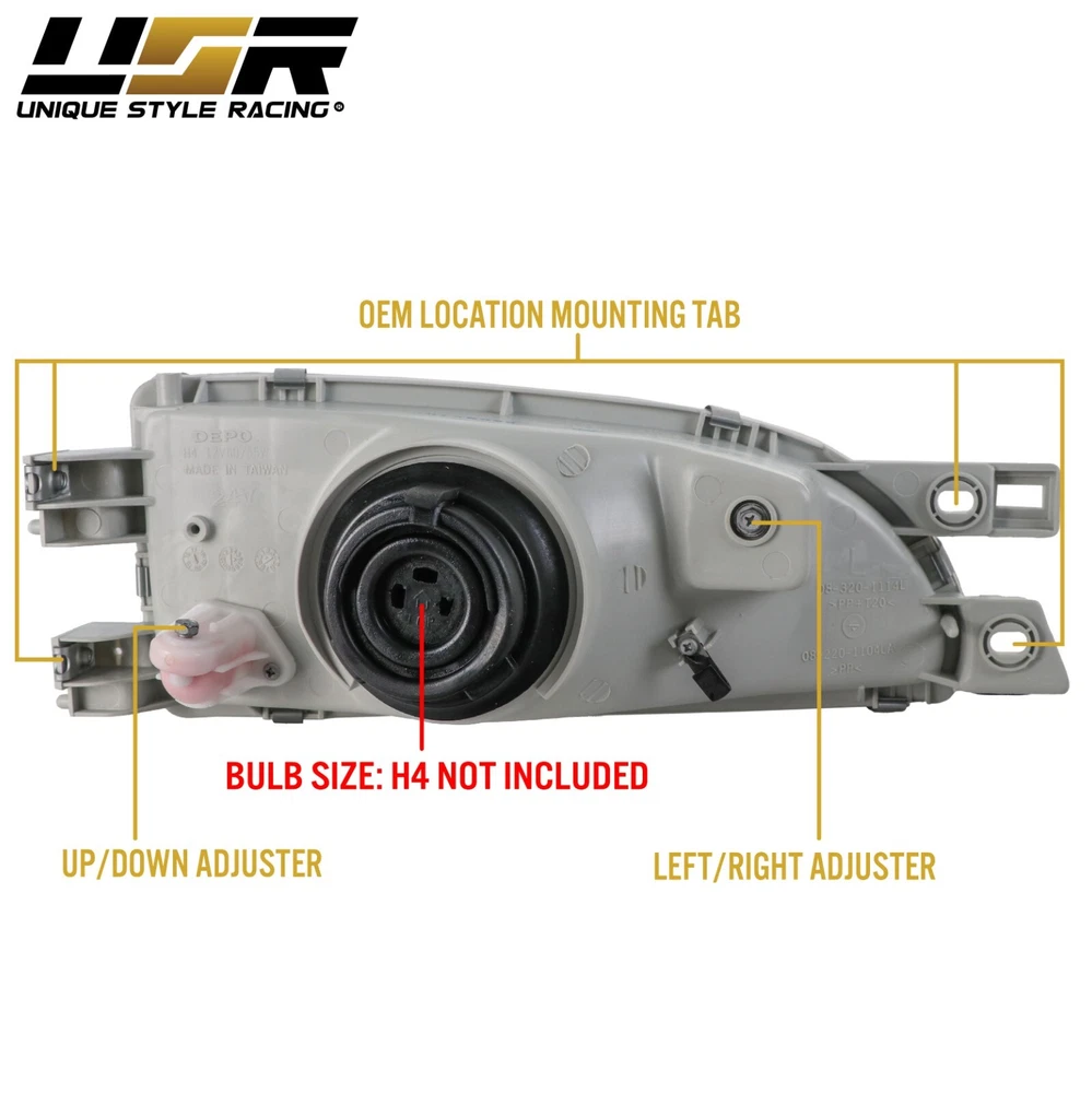 ATTENTION: For fitment and address issues, we will contact you through eBay message system first and by phone. If we are unable to get a hold of you or we cannot ship your order within 24 business hours after your order is placed, we will cancel the purchase instead. Please be sure you check product info carefully and enter your address correctly before purchase. Thank you. visit our store | View feedback | Sign up for our newsletter | Customer Support: Message Via Ebay Please read and understand our complete description and policies/terms below prior to buy. HL-SU-IMP-95-LHD-C-CHR-SET DESCRIPTION Product Details: This listing is for a BRAND NEW set (2 Pieces, Left and Right) of "JDM Crystal" Style Chrome Housing Glass Lens Headlight Fits For: 1995-2001 Subaru Impreza TO REPLACE OEM # Left Side 84001FA451, 84001 FA451, 84001-FA451 SU2502117 Right Side 84001FA441, 84001 FA441, 84001-FA441 SU2503117 Features: * Chrome Housing Clear GLASS Lens Upgrade Assembled and Sealed by the Manufacture! * A True JDM Style Clear Upgrade with the Needed Wire Adapters for US Spec! * Glass Lens provide UV Protection and High Impact Resistance * Made by ISO2001 certified manufacturer, Excellent Quality! * No Re-Wiring Needed, True Plug and Play! No Error after installation. Specs: * Brand: DEPO / Unique Style Racing (USR) * Type: "JDM Crystal" Style Upgrade * Color: Chrome Housing * Lens: Glass * Bulb Specifications: H4 High/Low Beam * Bulbs Included: No In the Package: * x1 Pair of Front Headlight Assemblies (Left + Right) Special Note: * Reuse Bulbs to Complete Installation. Important Notes: - Although DIY is possible, CERTIFIED & LICENSED PROFESSIONAL INSTALLATION is HIGHLY SUGGESTED . - We do not provide Installation Instruction except the manufacturer's original ones if there is any. - Direct OEM STOCK Replacement - No modification needed to fit the specified years / make / models / trims. - Our Products Are SPECIFICATION SENSITIVE and we ship DOOR to DOOR ONLY. Any package being sent to "FORWARDING COMPANY" is not our responsibility. - You, as the buyer / consumer are solely responsible for all damages and losses. - We highly recommend you to buy new gaskets prior to install the product you purchased from our company since the stock ones by now should have been worn out, therefore, it is easily allowing moisture to get in and create condensation which is NOT due to the product that has leak, but bad gaskets. - Some EXCEPTIONS For Warranty Claims: A.) No visible / physical damages to the product and / or warranty is void, B.) Alteration to the product will result in termination of warranty, C.) Be sure the stock gaskets or rubber seals are not torn and worn as you will need to reuse them when you replace your stock lights with ours. You will also be asked for photos that documents any *leaking*, *misting*, *fogging up* and *condensation* issues, as well as the condition of your stock gaskets or rubber seals. and lastly, D.) All of our lighting assemblies are NOT compatible with XENON HID and LED-type bulbs. Please use either incandescent or halogen bulbs per advertisement. - Please be sure to check the provided PHOTOS, read the DESCRIPTION and ask QUESTIONS before purchase. Thank you for your business. ABOUT US We're genuine and honest sellers and we carry great selection of the quality products to choose from, at a competitive pricing. Every order is carefully packaged and inspected by three of our staff using the latest technology to ensure safe shipment to you. We value good relationship with our customers and if you have any question or concerns regarding a sale, please do feel free to contact us first. Please do check your ebay message often for your order status, we will contact you for any delay that is caused by the payment or shipping complication arises from processing your order. We hope you enjoy your purchase! PAYMENT We accept payment by: Paypal. We accept PAYPAL only at this moment for all ebay transactions and MUST ship to paypal's listed address. 1.) If you are using eBay’s checkout system, please ensure that your registration information is current and will match what you have on PayPal. We will not be able to accommodate to change the original address we receive at the time of payment with an alternative one, once the transaction is completed via eBay and PayPal. 2.) We are required to ship to the address attached to your payment only. 3.) We will not be able to ship to an alternative address besides the original address shown on your PayPal payment detailed page. 4.) Please DO read and understand the policies / terms prior to buy to avoid any future discrepancy from occurring. Thank you for your cooperation! SHIPPING Please read and understand our complete policies/terms below or ask question if you have concerns prior to buy. 1.) Free shipping only applies to the listings that have the “Free Shipping” icon displayed and for completed transactions. Any canceled, incomplete, refused or undeliverable packages are subjected to a 20% re-stocking fee + all shipping related fees. 2.) Shipping costs incurred are non-refundable under any circumstance. Shipping costs are incurred and paid to the shipping courier and they are not refundable. 3.) We DO NOT ship to APO / FPO, GUAM, MP, PUERTO RICO (PR) and VIRGIN ISLAND (VI) 4.) INTERNATIONAL COUNTRIES: Buyer is responsible for all Brokerage Fees, Taxes & Duties - which may be charged upon delivery. Please contact your local shipping agent to determine your estimated taxes & duties. 5.) Pick up / Will Call service is not available for all ebay transactions. 6.) Shipping service fee is NOT refundable if the merchandise is shipped correctly as pictured and described. Please make sure you, as the buyer, understand this term prior to buy. 7.) EXTRA protection to guarantee the package arrived / delivered in safe and sound condition is $2.50 additional and is optional. We strive hard to ensure ALL of our packages arrive safely and intact by hav