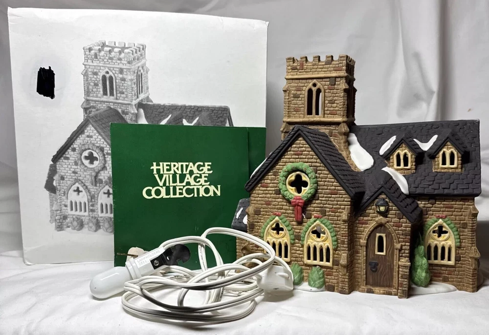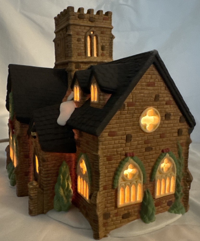 DEPT 56 DICKENS VILLAGE KNOTTINGHILL CHURCH RETIRED " 55824 - Tested + LIGHT Please see all photos. Item is preowned to show signs of wear and use. Item is in original box and packaging. Box and packaging to show signs of where and have some markings. Light does work bulb included. Thank you for viewing this listing .