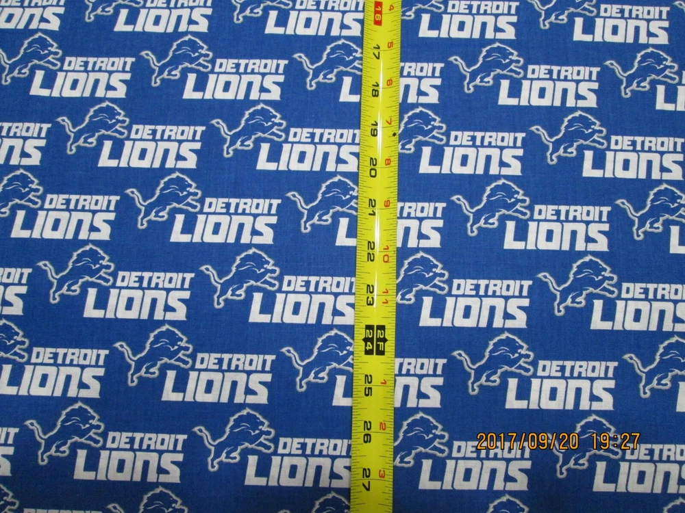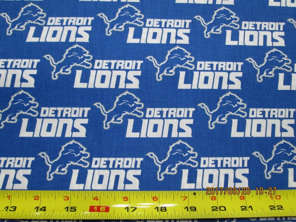 Up for sale is ONE YARD PIECE (36" x 58") of DETROIT LIONS NFL.THIS BRAND IS NEW FOR THIS YEAR DESIGN FABRIC FOR MAJOR LEAGUE FOOTBALL "GO LIONS". This fabric is 100% cotton. Show your team spirit with this great fabric!!please let us know if you have any questions or need this fabric in a hurry....... Please check out our store many other fabrics and many other great items. We combine shipping. This fabric is intended for personal use only. Thanks for your time. Powered by eBay Turbo Lister The free listing tool. List your items fast and easy and manage your active items.