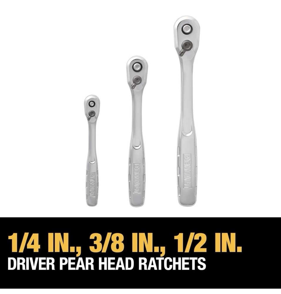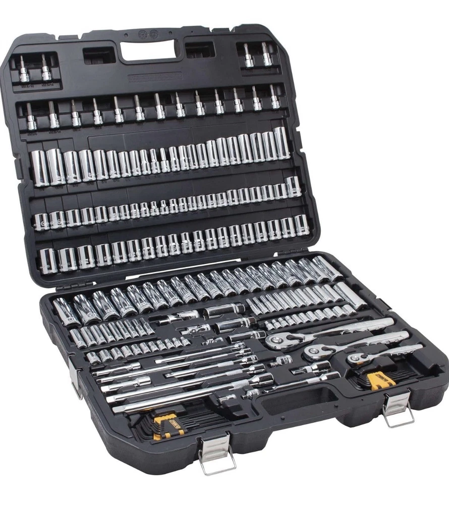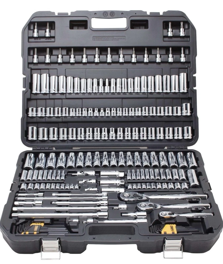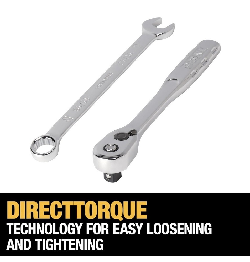 Comprehensive Assortment: Includes 192 pieces—covering 1/4", 3/8 ratchet, and 1/2" drive ratchets, 1/4 socket set, 1/2 socket sets (SAE & metric), combination wrenches, extensions, adapters, hex keys, ratchet set metric wrench set, metric socket set, deep socket seta and accessories Ideal for mechanics, automotive, as a car tool kit and general maintenance tasks High-Quality Construction: Made from durable chrome vanadium steel for long life, corrosion resistance, and reliable heavy-duty performance. Mirror-polished chrome vanadium finish not only resists corrosion but also offers a professional look DirectTorque Technology: Sockets feature DirectTorque technology, which helps prevent rounding of fasteners and ensures optimal torque transfer 6-Point Socket Design: Provides better grip and reduces the risk of fastener rounding, especially compared to traditional 12-point sockets Easy Identification: All tools and sockets are clearly hand-stamped for quick and easy size identification in the field or shop Convenient Storage Case: Supplied in a durable hard shell carrying case, making organization, transportation, and protection of the tools straightforward and reliable Lifetime Warranty: Supported by DEWALT’s lifetime warranty, which delivers confidence and long-term value Versatility: Suited for professionals, serious DIYers, and mechanics for automotive work, machinery repair, and household projects Knurled Control Ring