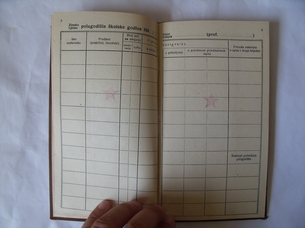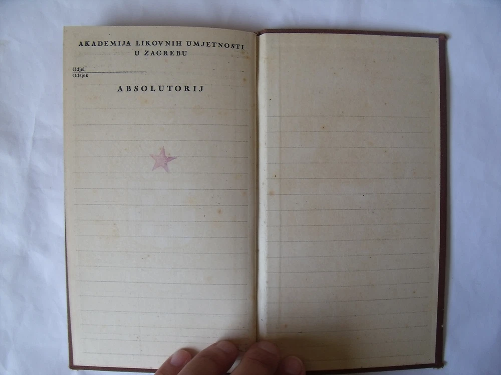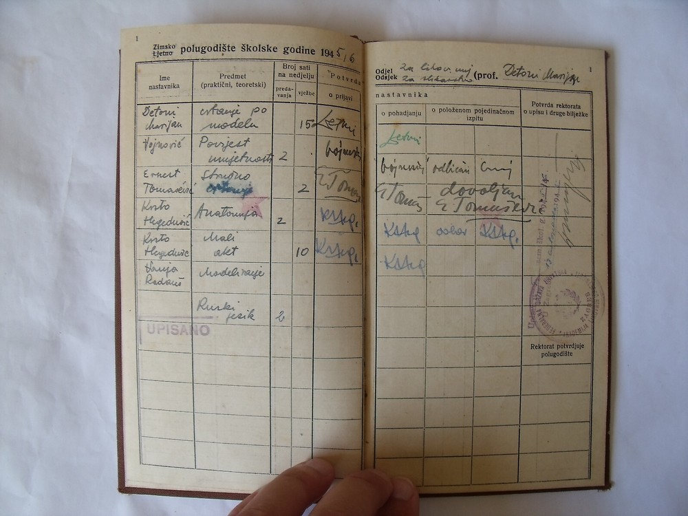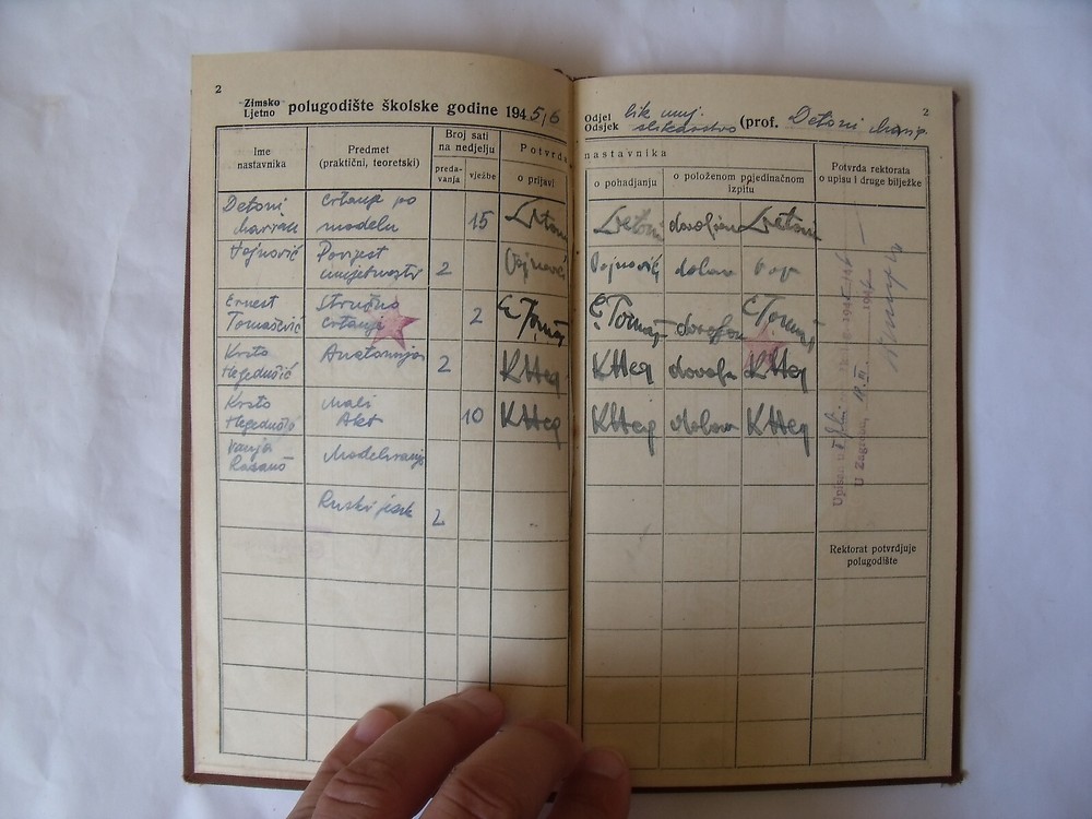 DF Yugoslavia Academy of Fine Arts Zagreb student booklet 1945 Lecturers ; Marijan Detoni - drawing according to the model Vojnović - art history Ernest Tomašević - expert drawing Krsto Hegedušić - anatomy Krsto Hegedušić - a small act Vanja Radauš - modeling
