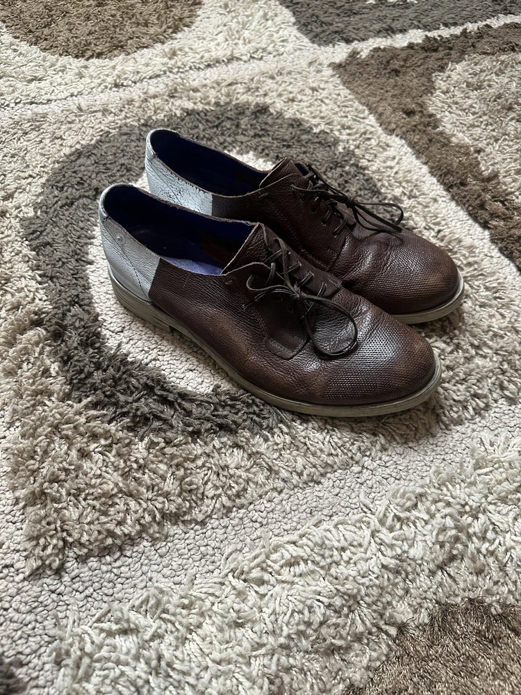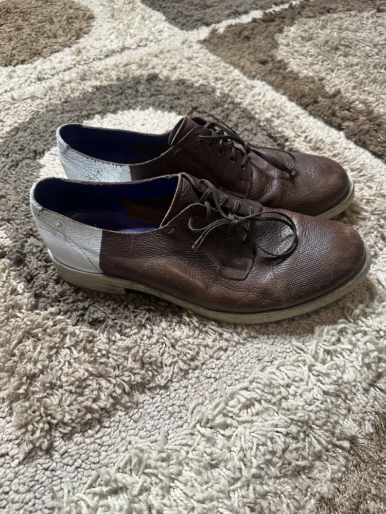 Elevate your style with these stunning brown color block oxfords from Diesel. Crafted with high-quality leather and designed in Italy, these shoes are perfect for the fashion-conscious man who wants to make a statement. The medium width and US shoe size 10 make them a comfortable fit for any occasion. These shoes are perfect for men who want to add a touch of sophistication to their wardrobe. The dark shade and perforated design add a unique touch that will make you stand out from the crowd. Whether you're dressing up for a formal event or just want to look sharp, these Diesel oxfords are the perfect choice.