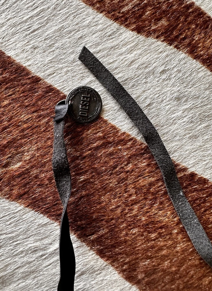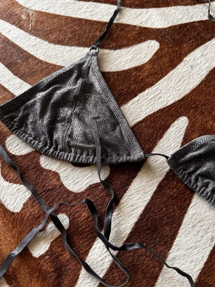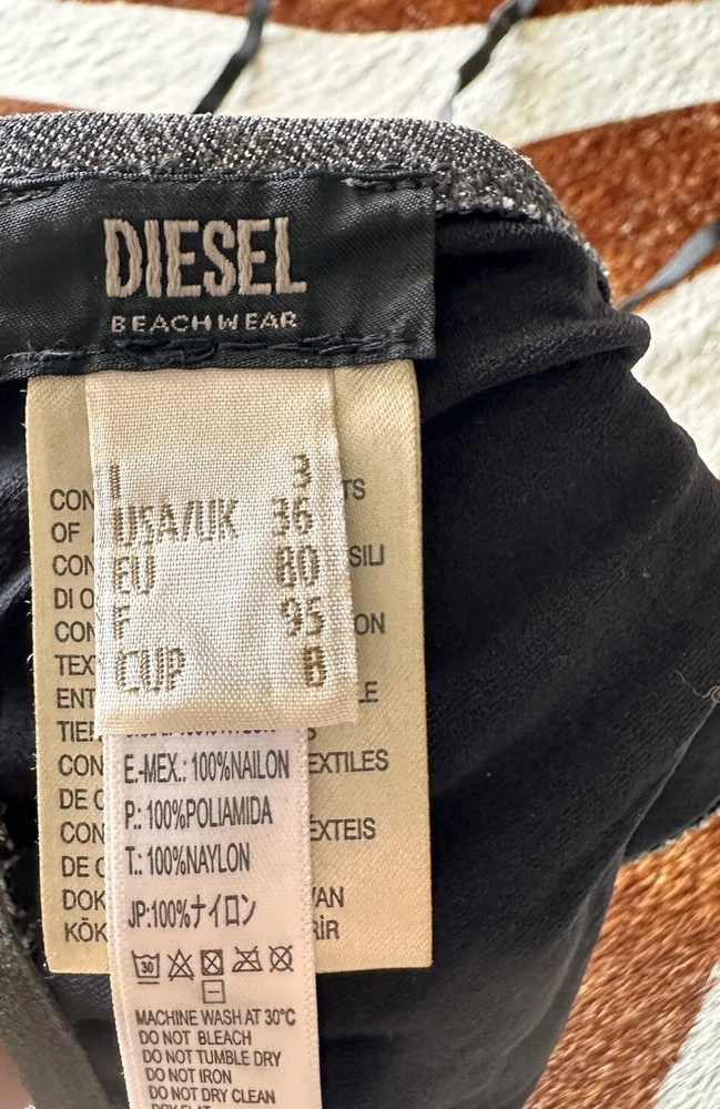 DIESEL Beachwear Bikini Top Shimmery Silver/ Faux Leather Straps B36 Medium. Condition is Pre-owned. Shipped with USPS Ground Advantage.