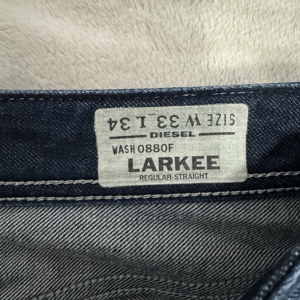 Rise: Low (8-10 in) Garment Care: Machine Washable Model: Diesel Larkee Closure: Button Material: Cotton Pattern: Solid Type: Jeans Fabric Wash: Medium Fit: Regular Brand: Diesel Distressed: No Vintage: No Fabric Type: Denim Country/Region of Manufacture: Morocco Department: Men Pocket Type: 5-Pocket Design Style: Straight Season: Fall, Spring, Summer, Winter Waist Size: 33 in Size Type: Regular Accents: Button, Logo Features: Breathable, Comfort, Pockets Inseam: 34 in Size: 33 Personalize: No Color: Blue Handmade: No