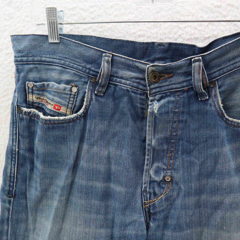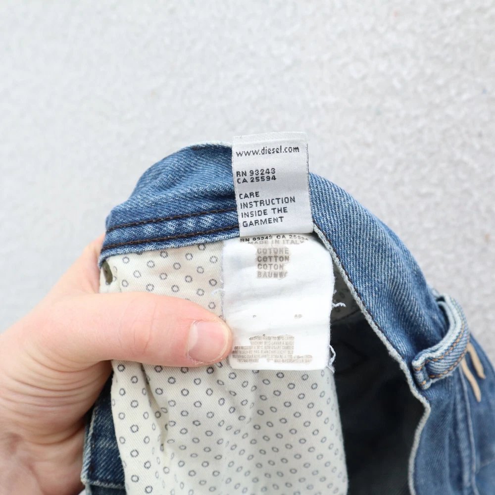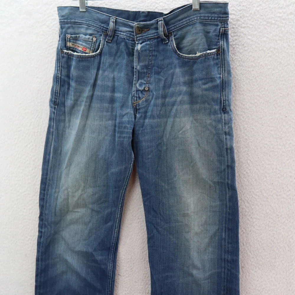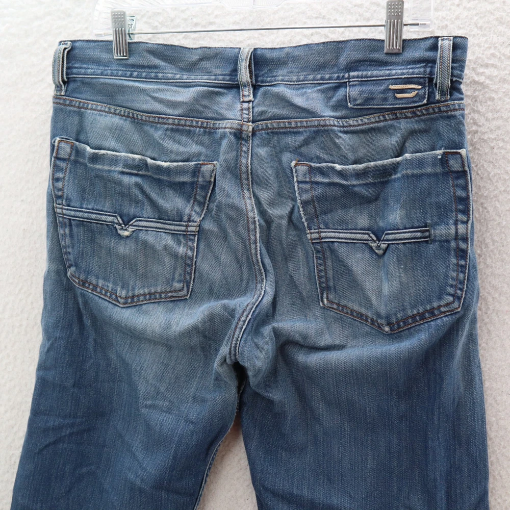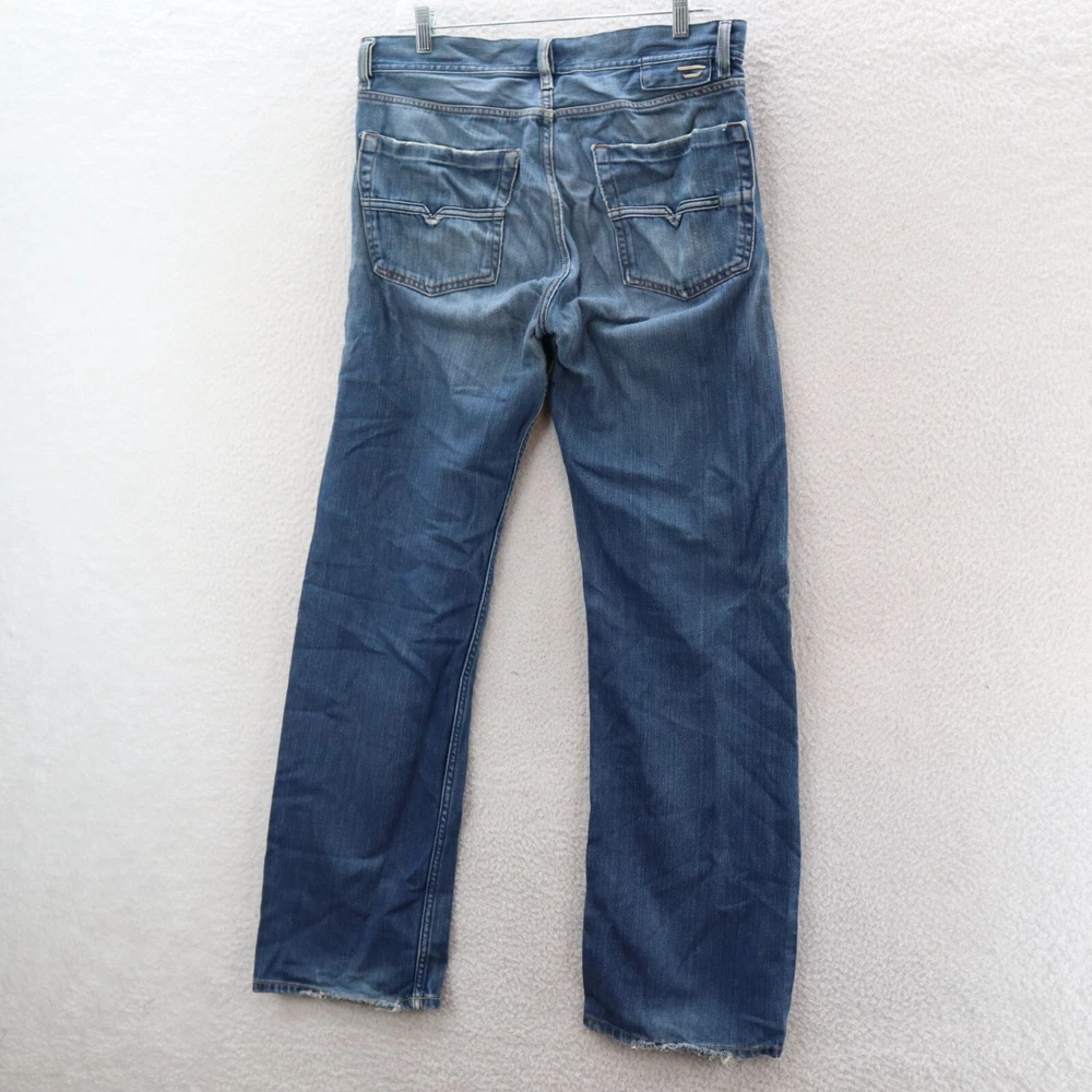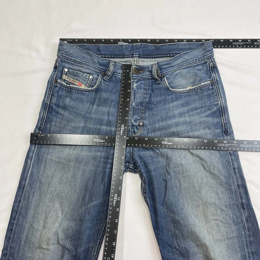 DIESEL Jeans Men's 34X33 Blue Straight Leg Button Fly Distressed Made In Italy This item is in pre-owned condition and therefore may show signs of previous use, such as small stains, holes, or other wear. Please view all of the items photos as any defects will be documented there. Sizing in the title and item specifics are based on actual flat lay measurements of the item not what the tag says. Measurements can be seen in the photos. I offer a 30 day free return policy, under the stipulation that you return the item in the same condition that it was sent to you in.