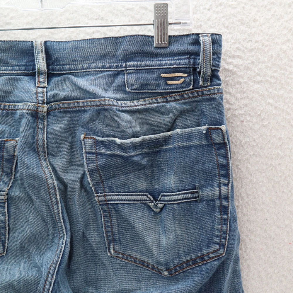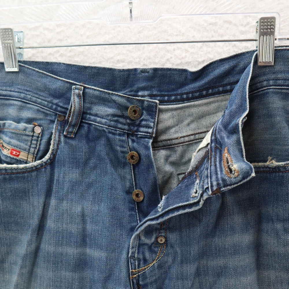 DIESEL Jeans Men's 34X33 Blue Straight Leg Button Fly Distressed Made In Italy