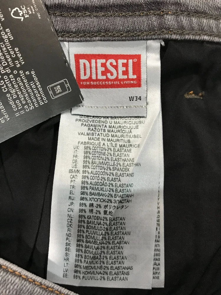 Description: DIESEL Men's (Size W34-L30) Light Grey Denim Buster Slim Tapered Jeans. (See pictures) Brand: DIESEL Gender: Men's Size: 34 color: Light Grey Pattern: Wash Material: 98%cotton/2% elastane Condition: New with tags MSRP: $225 Buy It Now Price: $109.99 Shipping: Plus $8.50 for padded flat rate envelope shipping Note: Picture Accuracy is about 90% Slight variance in color may result, due to lighting and camera default settings.
