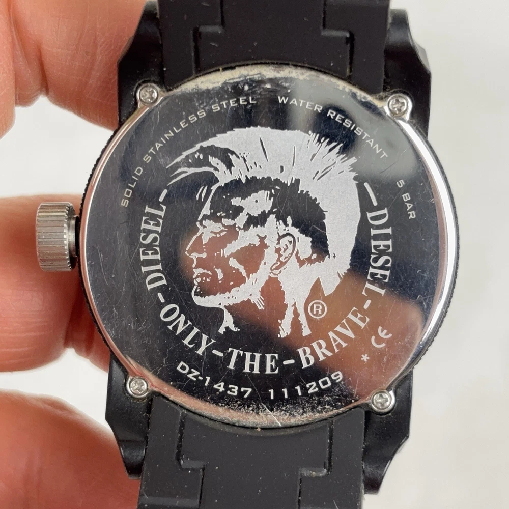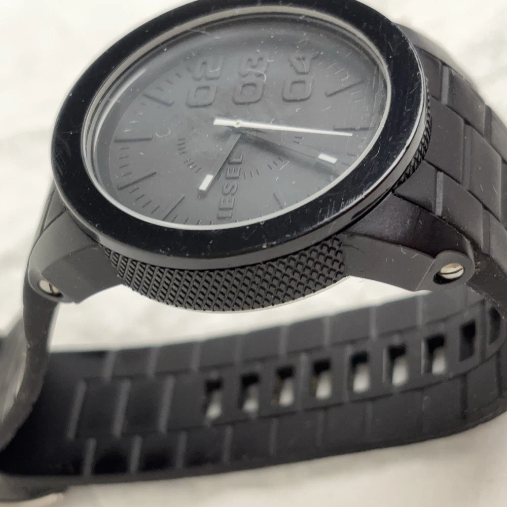 DIESEL Mens Wristwatch DOUBLE DOWN DZ1437 44mm Silicone Black RUNS New Battery running good pre-owned condition, see photos case 44mm and thickness is 12 mm See photos Check out my store, 1000’s of vintage and collectibles items. Guarantee, Return, Shipping, and Tax Policies: We guarantee our products. We allow return or exchange. Email us before sending it back to resolve any issues. Taxes for those US States that require them will be collected by eBay. International Buyers - please note: Import duties, taxes and charges are not included in the item price or shipping charges. Please check with your country's customs office before bidding/buying. Thank You!