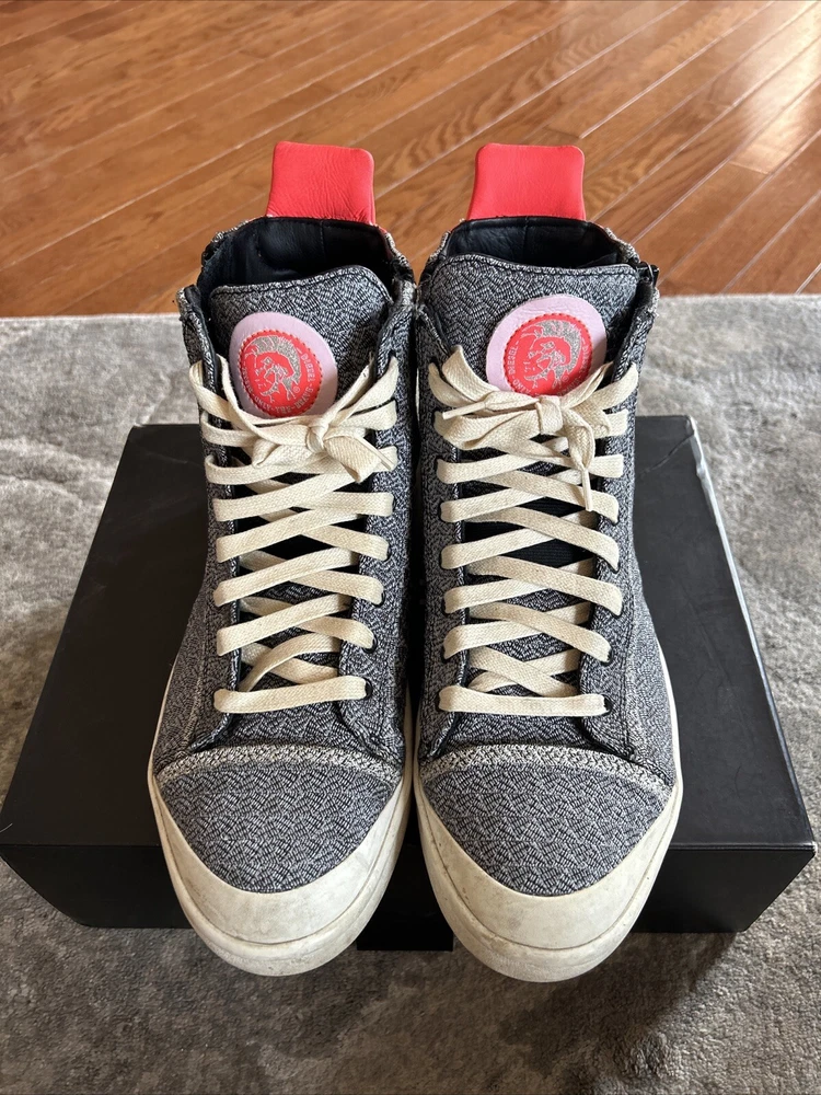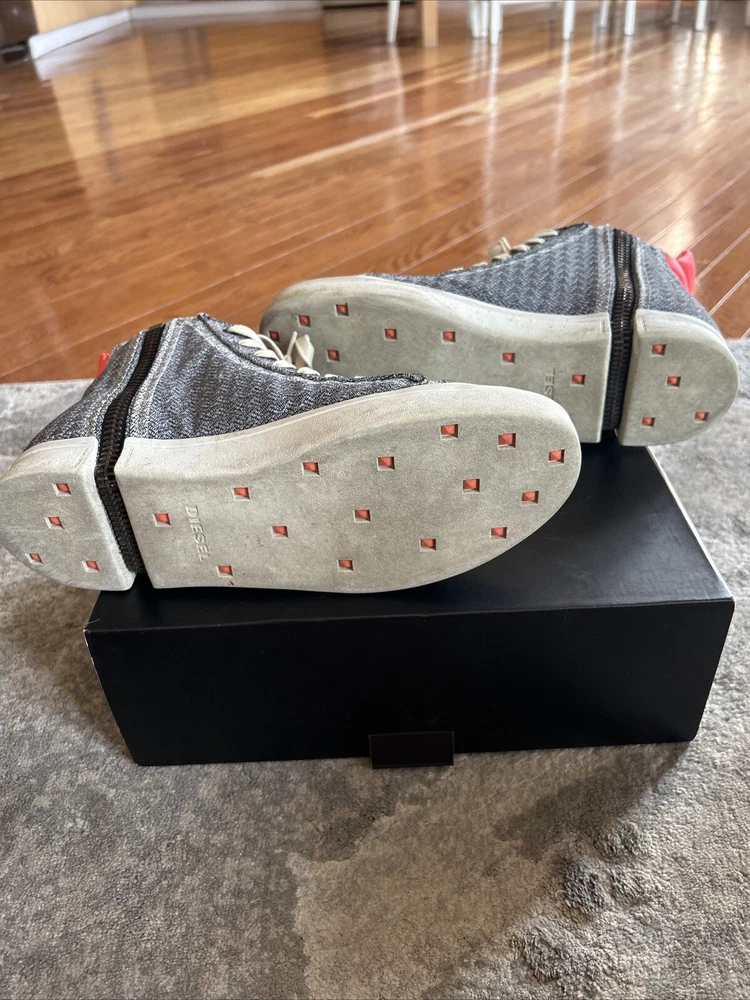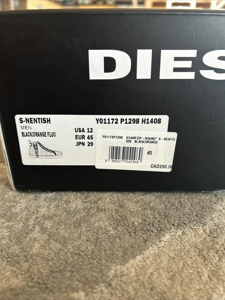 Elevate your casual shoe game with these DIESEL Nentish men's shoes in size 12. The brand is known for their quality and style, and these shoes are no exception. Perfect for everyday wear, they are designed for comfort and durability. Featuring a casual design, these shoes are suitable for any occasion. The model is named after the brand, and is sure to make a statement. Don't miss out on the chance to add these stylish shoes to your collection.