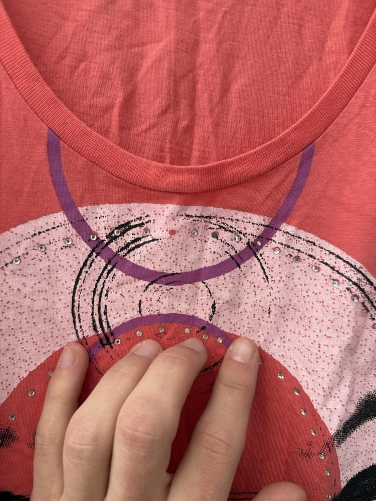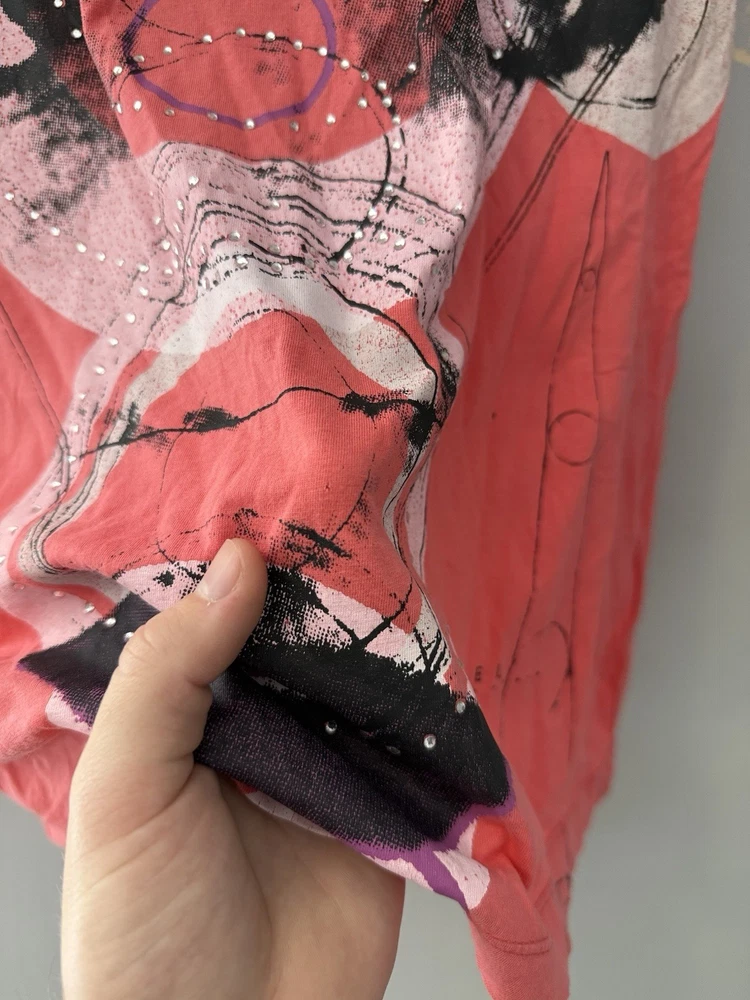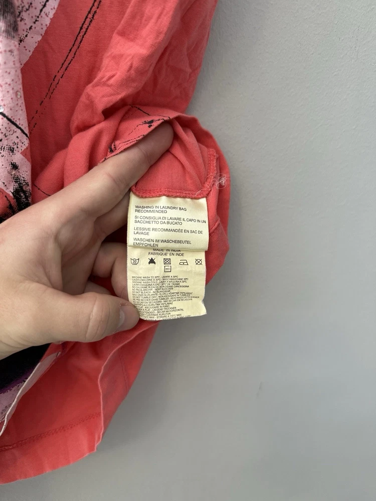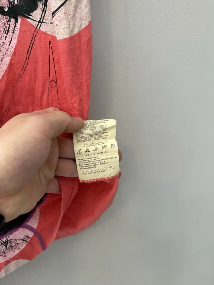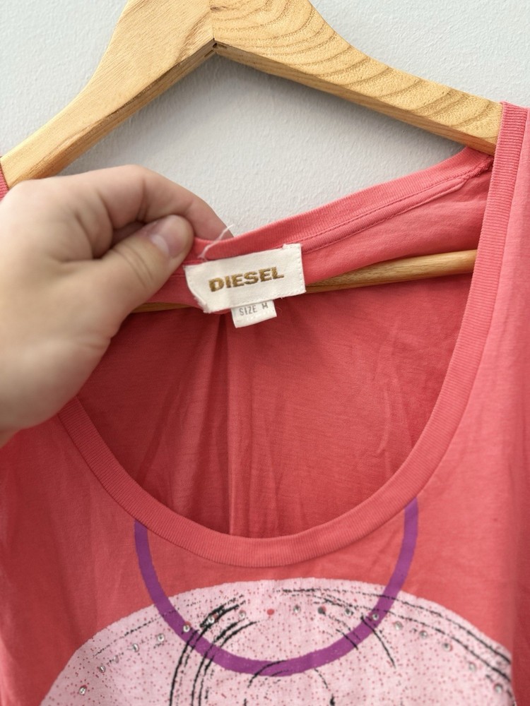 Authentic Vintage Diesel Graphic Tee Add a touch of avant-garde to your wardrobe with this unique Diesel t-shirt. Featuring a striking abstract face graphic with geometric elements and subtle rhinestone detailing, this piece captures the iconic edgy aesthetic of the brand.