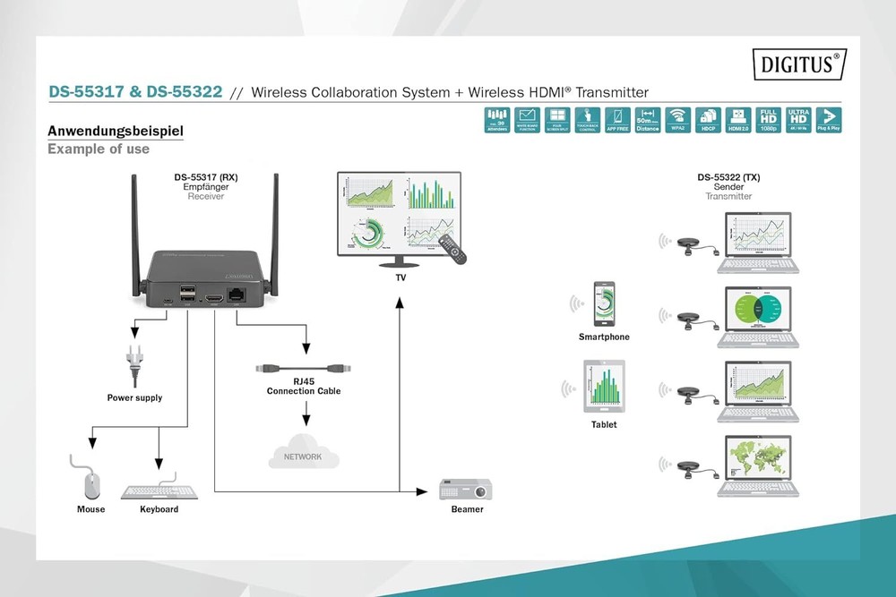 DIGITUS Click & Present Pro Wireless HDMI Transmitter for Seamless Presentations
