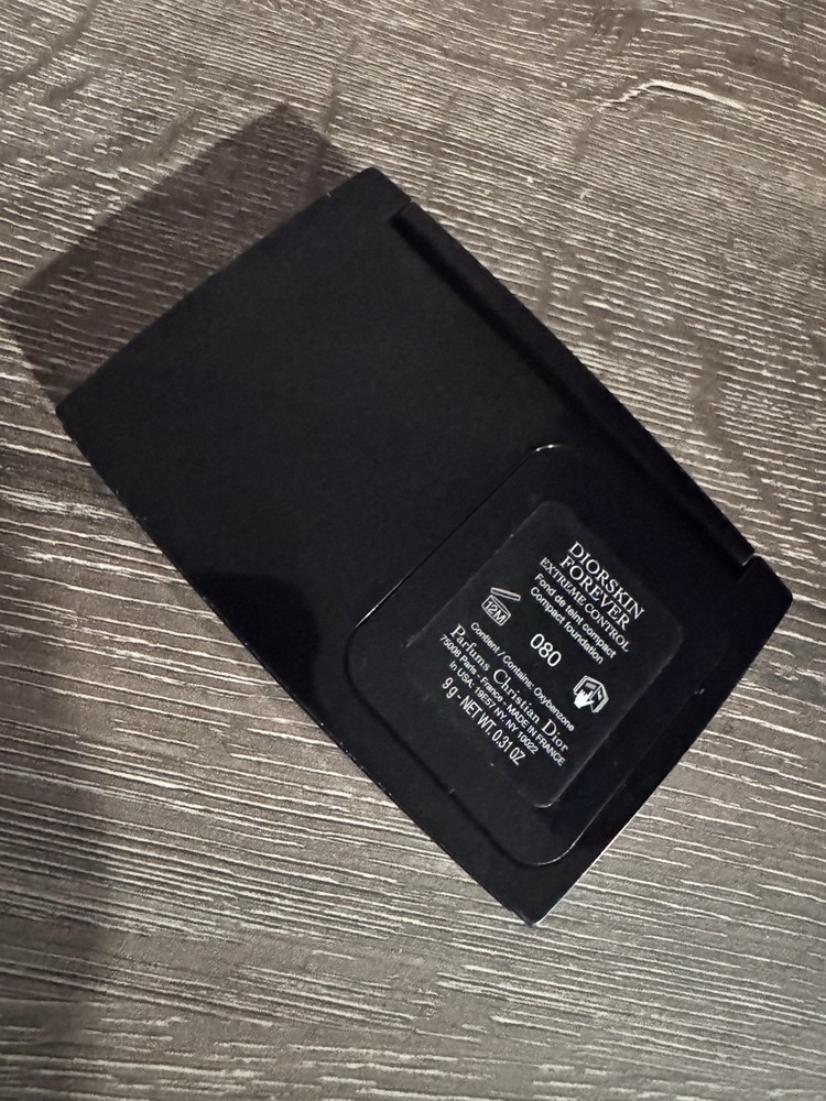 The DIOR DiorSkin Forever Extreme Control Compact Foundation Makeup in shade 080 is a full coverage foundation by Dior. This pressed powder formulation is designed for all skin types and provides a matte effect. With a standard size and a volume of 0.31 oz, this compact foundation is refillable and comes in a pouch. The product line is Dior Forever, known for its high-quality and long-lasting makeup products. It is recommended to use within 24 months of opening for optimal performance. dior skin forever extreme control compact foundation shade 080