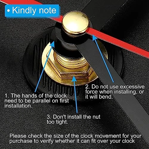 Return Policy Fast Delivery Trusted seller Clock Mechanism Replacement, Quartz Clock Mechanism Battery Operated DIY Wall Clock Aluminium Hands and Motor Kit Mute Movement, Black Red Product Description Material: Plastic, Quartz, Aluminum , Metal; Battery Type: AA Carbon Battery (Not included); Thread Length: 5 mm / 0.2 inch; Mechanism Shaft Length: 12 mm / 0.47 inch; Mechanism Box Size: 56 x 56 x 16 mm/ 2.2 x 2.2 x 0.63 inch (L*W*T); Suitable for Clock Face Thickness: 2-3 mm / 0.078-0.12 inch Advantage:Mute clock mechanism: The clock movement adopts a super silent scanning design, and the scanning clock movement has no noise, providing a quiet environment for your sleep. Time accuracy: The error in a day is within 1 second. This clock mechanism battery operated is low power consumption, only 1 AA battery is required (not included). Instruction: 1. Insert the movement into the clock face slot; 2. Install the washer and nut in the movement shaft; 3. Place the hour hand, minute hand, and second hand at the twelve o'clock position in order. Application: The diy clock mechanism replacement Kit is a good replacement. suitable for cross-stitch, three-dimensional embroidery, craft clock, frameless draw clock,12888, etc. Suitable for repairing, replacing, and also suitable for diy various styles of the clock frame. Note: 1. Please check the size of the battery clock mechanism for your purchase to verify whether it can fit over your clock; 2. Do not use excessive force when installing, or it will bend. Shipping Returns Payment Shipping Shipping is FREE to all addresses other than APO/PO boxes in the lower 48 states. All our stock ships from US-based warehouses. Shipped via USPS or UPS (depending on location and package weight) Unless stated otherwise, all orders will ship within 24-72 hours of your payment being processed. Check our feedback to see the great reviews of FAST shipping we offer. Returns Seller does not accept returns Payment We currently accept payment via eBay managed payments only. Once payment is cleared, we will dispatch your shipment within 1-3 business days. Please refer to the "Shipping" tab for more information regarding shipping speed to your destination.