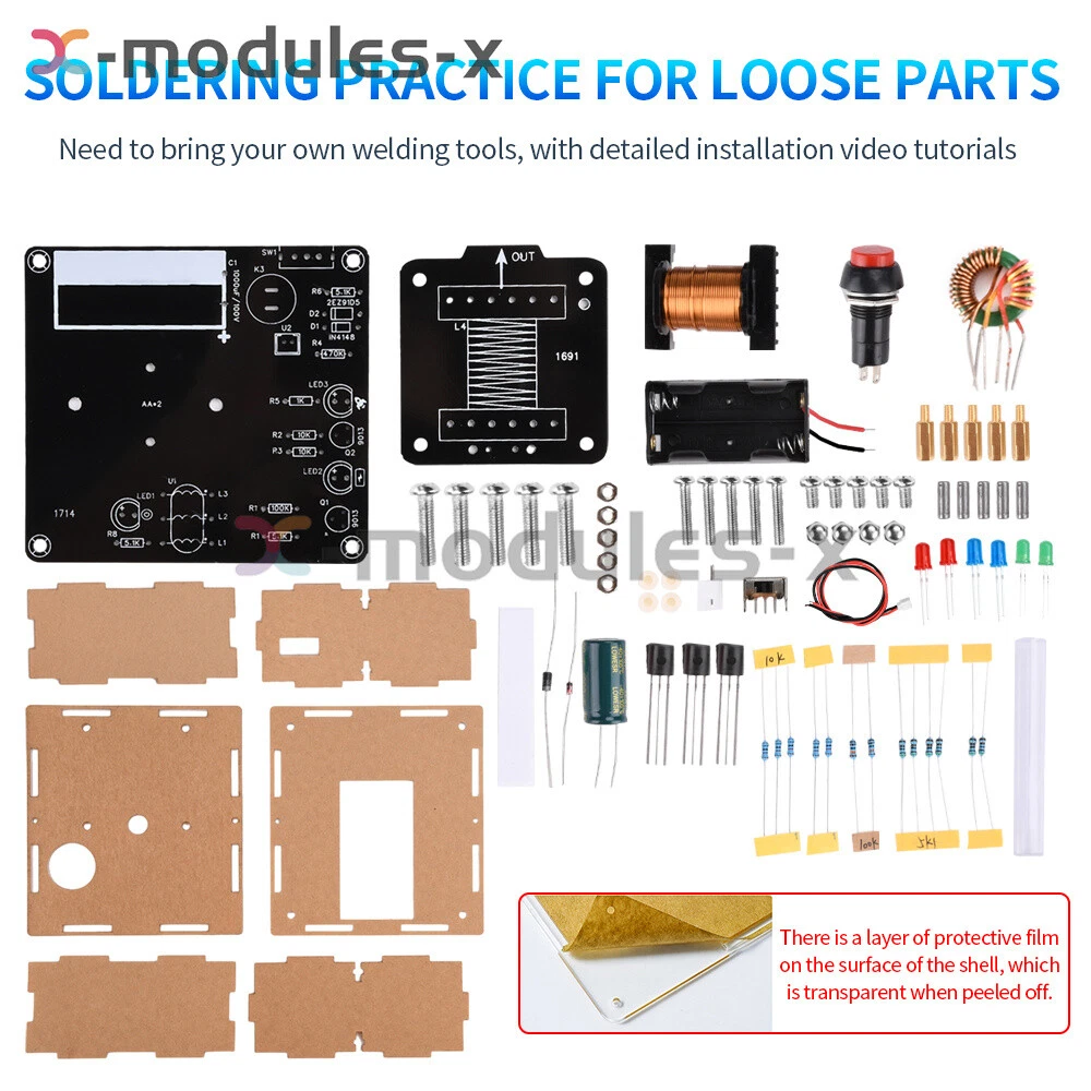 DIY Electric Magnetic Transmitter Kit Soldering Learn Electronics Kit + Case New