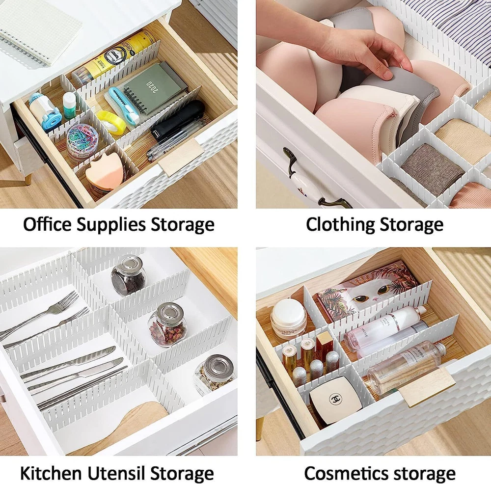CPO Caption DIY Grid Drawer Dividers Adjustable Sock Underwear Dresser Drawer Organizers NEW Includes 4/8 pcs* Drawer Dividers DETAILS & SPECIFICATIONS Features: Question: Why do you need our Underwear Drawer Organizer ? 1. Make you room tidy and neat with our drawer organizer. 2. Our drawer organizer is the perfect dresser drawer organizer for adults and children as well as baby socks, underwear, ties, underwear, etc. 3. Convenient, lightweight. Easy to fold them when not in use to save space. 4. Suitable for walk-in closet, wardrobe or drawers. METERIAL:Plastic and odorless, 14.5 x2.5inch for each drawer organizer. Features: ADJUSTABLE:The plastic is easy to bend for making custom shapes-bending enough to be able to help you make the divider sizes you need. The plastic can also be cut to size you need by using wire snips. The grid divider is an perfect storage container. ORGANIZED:The cosmetics on table,socks in wardrobe,kitchen condiments and utensils are all neatly stored under the help of DIY drawer organizers divider. Great for kitchen,bathroom and office,like sock,underwear,clothes,dresser,stationary,ect. SAVE TIME:Easy to assemble them,and your goods are organized in the DIY drawer divider. You will not worry about spending more time on organizing drawers. DIY plastic grid drawer dividers like a helpful hand for your better life. Say goodbye to the cluttered wardrobe! Note Pictures are taken in kind, due to the different colors of the display, there may be deviations. Due to manual measurement, there will be an error of +/- 0.1". Thank you for your understanding. WHY OUR CUSTOMERS KEEP SHOPPING WITH US CUSTOMER SERVICE We are available 7 days a week. CUSTOMER SATISFACTION GUARANTEED CPO's commitment to 100% customer satisfaction is backed by a 30-Day Money Back Guarantee for New items and a 60-Day Money Back Guarantee for Recon! Guarantee • Fast & Free Shipping on ALL Orders We believe that you should enjoy the benefit of FREE Shipping on all of your orders within the all Continental States. That's why no matter what you buy, we will ship it for FREE, so the price you see is exactly what you pay. No hidden fees or shipping charges. • Most Items Delivered in 2-6 Business Days When you're buying from us, you deserve fast and reliable service. That's why we have a "Same Business Day" processing in place and wide range of shipping options to choose from in order to deliver your package as soon as possible. *2-6 business days’ time-frame is NOT GUARANTEED and was statistically calculated based on all previous orders. • ALL Orders Placed On Business Days Before 4 PM EST Will Be Shipped Same Day Why wait a day or more for your order to ship? All orders placed before 4 pm EST, Monday to Friday, ship the SAME day. Orders placed on Friday after 4 pm EST, Saturday and Sunday will be shipped the next Monday (if business day). We are closed on all Federal Holidays. • 30 Days Money Back Guaranteed! We will gladly accept your return within 30 days of the original purchase. Please, see below for our full Returns Policy. Shipping • Most orders arrive at your door in 2-6 Business Days FOR FREE! • Place your order before 4 pm EST and it will be shipped the same day, Monday to Friday, excluding major holidays. • We will ship your order to your PayPal Verified address provided. • Please verify your address and make sure that it is your current address before making your payment. Any address change requests after your payment CANNOT be guaranteed. • We do not include invoice with our shipments. Feedback • Positive feedback is automatically done once your order is shipped. • We appreciate all our customers to post a Positive Feedback and "Five-Star" scores. • If for any reason you are not satisfied with your purchase. Please contact us via eBay Message and We will do our best to satisfy you! Payment & Cancellation • Instant PayPal payment is required. • We also accepts Visa, MasterCard, Discover, and American Express through PayPal guest checkout. • Sales tax is charged by eBay based on your shipping address. • To uphold a shipping speed, your order will be processed almost immediately. If you change your mind after your payment is confirmed, we will do our best to stop the order, however, we CANNOT guarantee the cancellation. Return • We will gladly accept your return within 30-Days of the original purchase. • Our return process is simple and fast: 1. We will pay for the return shipping label if you received a broken/defective item(s) or the item(s) doesn't match our description. As soon as we receive the item(s) back we will process a refund for the item(s)which was/were returned. 2. You will be required to pay for the return shipping label if you changed your mind or no longer need the item(s). As soon as we receive the item(s) back we will process a refund for the item(s) which was/were returned. • If we'll receive a package back because of the incorrect address, the refund will be processed excluding our shipping cost. Contact Us • Send us a message on eBay and we will answer within 24h on business days.