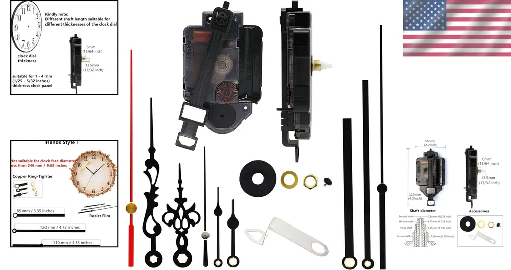 DIY Pendulum Clock Movement Kit - Quartz Mechanism for Custom Clock Creation ‹ › ‹ › ‹ › ‹ › ‹ › ‹ › ‹ › ‹ › DIY Pendulum Clock Movement Kit -Quartz Mechanism for Custom Clock Creation -Good for repairing, replacing, or making a clock -Manufactured by Young town in the 12888 series -Applicable to cross-stitch, three-dimensional embroidery, craft clock, frameless draw clock, etc. Features: Pendulum type STEP movement Suitable for 1 - 4 mm (1/25 - 5/32 inches) thickness clock panel Total shaft length: 13.5 mm (17/32 inches), thread length: 6 mm (15/64 inches) Max Pendulum Swing: 26°, Max Pendulum Weight: 40g, Max Pendulum Length: 35cm Instructions included Benefits: Customize your own clock with this DIY Pendulum Clock Movement Kit Great for repairing, replacing, or creating a clock Compatible with various models in the 12888 series Easy to install and use Allows for intricate and unique clock designs Instructions included for hassle-free assembly Why choose our DIY Pendulum Clock Movement Kit? Create your perfect clock with our DIY Pendulum Clock Movement Kit. Whether you're repairing a clock, replacing a mechanism, or crafting a new timepiece from scratch, this kit has you covered. With a pendulum type STEP movement and compatibility with various clock designs, this kit offers endless possibilities for your clock-making endeavors. Plus, the included instructions make assembly a breeze. Upgrade your clock with our high-quality, customizable kit today! Shipping Free & Fast Shipping - We offer free shipping to most of the USA with a normal delivery time of 3-7 days. However, due to the current situation, additional delivery time (up to 3 weeks) may be required for some items. Alternative Carriers - We may use alternative carriers (e.g. USPS, FedEx, UPS, etc.) to ensure your package arrives safely and on time. Due to the use of multiple carriers, we are unable to provide a tracking number automatically. Handling Time - Orders are processed and shipped within 1-2 business days of receiving cleared payment. Shipping Restrictions - Shipping to Alaska, Hawaii, Puerto Rico, Guam, and other US territories may incur shipping charges or delivery restrictions. Please contact us before ordering, or your order can be refunded/cancelled. State Restrictions - There may be restrictions based on your state of purchase. For example, certain items may not be shipped to California due to state regulations. Contact for Tracking Updates - If you require tracking updates or have any concerns about the delivery of your order, please feel free to contact us, and we will be happy to assist you. Return 30-Day Hassle-Free Returns - We want you to be completely satisfied with your purchase. If you are not, you can return the item within 30 days of receiving it for a full refund or exchange. Easy Return Process - To start a return, simply contact us and we will provide you with a prepaid return shipping label and detailed instructions. Restocking Fee - There are no restocking fees for returns. However, the buyer is responsible for return shipping costs if the return is not due to a seller's error. Refund Processing Time - Refunds will be processed within 5 business days of receiving the returned item in its original condition. Payment We accept all major credit cards, PayPal, and Apple Pay for your convenience. Your payment information is secure and encrypted to ensure a safe and seamless transaction. Please complete your payment within 3 days of purchase to avoid any delays in shipping. Feedback Your feedback is extremely important to us. We strive to provide the best products and customer service possible. If you are satisfied with your purchase, please take a moment to leave us a positive review. If you have any concerns or issues with your order, please contact us before leaving negative feedback. We are committed to resolving any problems and ensuring your satisfaction. Contact Us If you have any questions or concerns, please feel free to reach out to our customer support team. You can contact us through the eBay messaging system. We are available Monday to Friday, 9:00 am to 5:00 pm EST, and we will do our best to respond to your inquiry within 24 hours. Thank you for supporting our small family business! Item Height: Pendulum Clock Movement Kit Item Length: Pendulum Clock Movement Kit Item Weight: 2.89 ounces Item Width: Pendulum Clock Movement Kit Model: Pendulum Clock Movement Kit Unit Quantity: 1 Compatible Product: Pendulum Compatible Model: 12888 Brand: Unbranded Type: Clock Mechanism Material: Plastic Finish: White Color: White Compatible Brand: Not Set Year Manufactured: Not Set Time Period Manufactured: Not Set Era: 21st Century (2000-Now) Vintage: Not Set Antique: Not Set Original/Licensed Reproduction: Not Set