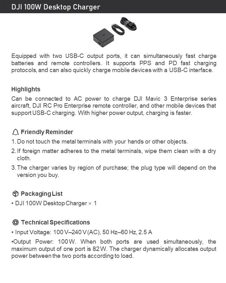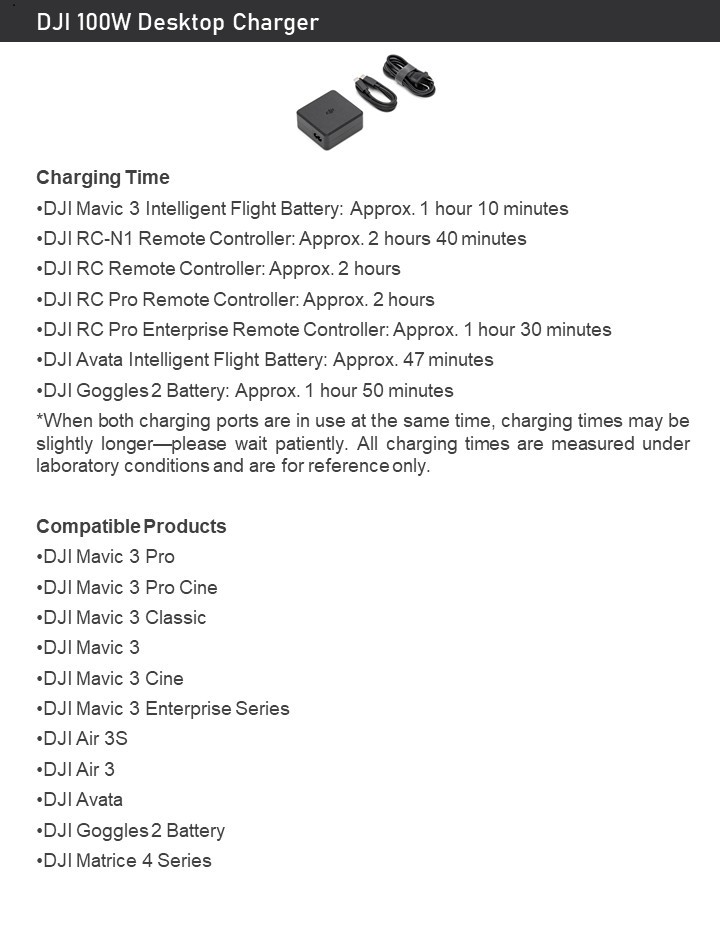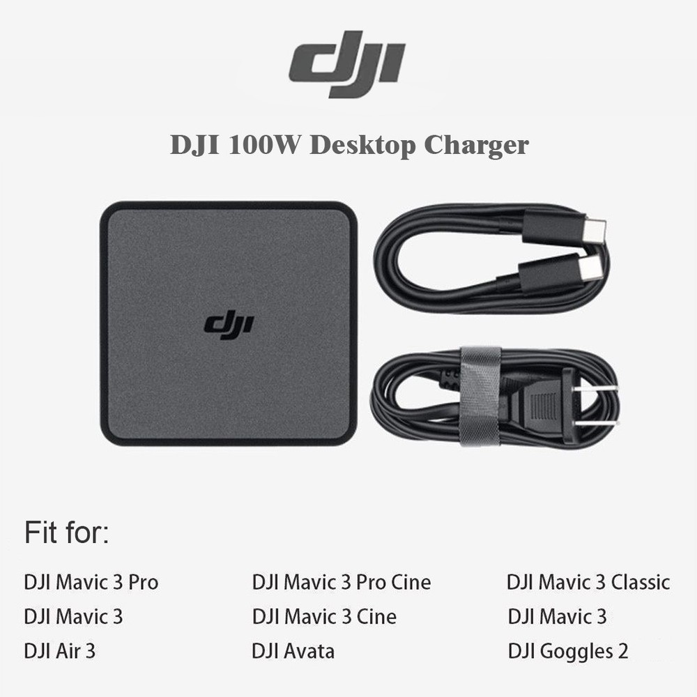DJI 100W Desktop Charger – Dual USB‑C Fast Charge for Mavic 3/Air 3/Avata