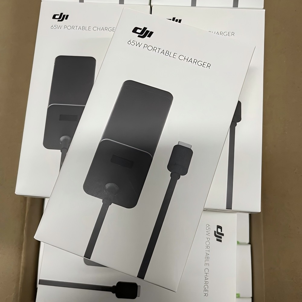 Genuine DJI 65W USB-C Power Adapter/Charger with Cable for Mavic 3,Air 3,Avata(PD-65CN) Take a Closer Look Overview The DJI 65W Portable Charger adopts GaN technology to accelerate the charging speed while also being more compact in size. It comes with a fixed USB-C cable and a USB-A output port. You can pair it up with your own USB-A cable to charge the battery and remote controller simultaneously. Supporting PPS and PD protocols, it can also charge your smartphone, laptop, and other devices. Highlights Universal ports, lightweight and portable In The Box DJI 65W Portable Charger × 1 Specifications Input Voltage: 100-240 V, 2 A, 50/60 Hz Output USB-C: 5 V, 5 A 9 V, 5 A 12 V, 5 A 15 V, 4.3 A 20 V, 3.25 A 5-20 V, 3.25 A USB-A: 5 V, 2 A Rated Power: 65 W Operating Temperature: 5° to 40° C (41° to 104° F) Charging Time*: DJI Mavic 3 Intelligent Flight Battery: approx. 1 hour and 36 mins DJI RC-N1: approx. 2 hours and 40 mins DJI RC: approx. 2 hours DJI RC Pro: approx. 2 hours DJI Avata Intelligent Flight Battery: approx. 47 mins DJI Goggles 2 Battery: approx. 1 hour and 50 mins * Devices will take longer to charge if both ports are used for charging simultaneously. Tested in a lab environment and should be taken as reference only. Compatibility DJI Mavic 3 Pro DJI Mavic 3 Pro Cine DJI Mavic 3 Classic DJI Mavic 3 DJI Mavic 3 Cine DJI Air 3 DJI Avata 2 DJI Avata DJI Goggles 2 Battery