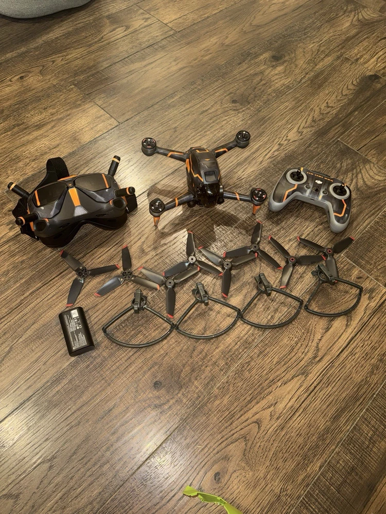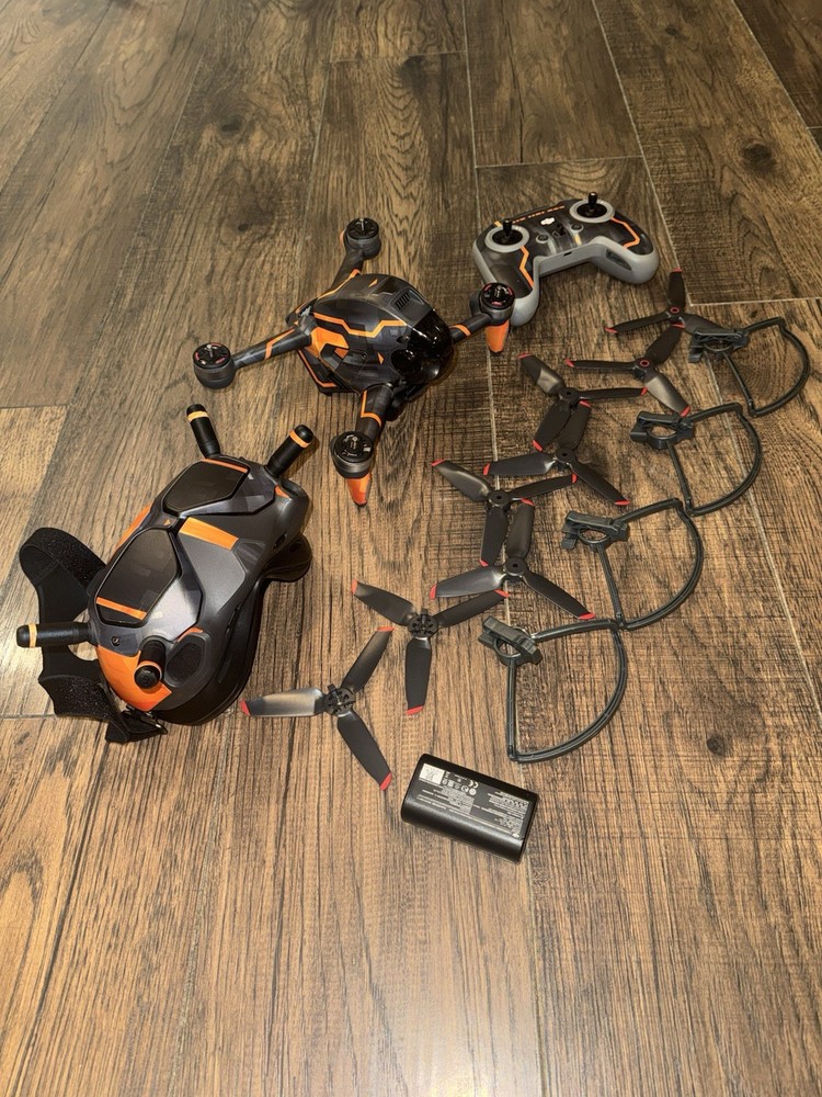 Only used a handful of times - probably less than 4 hours of total flight time. Everything is in excellent condition - no scratches or cosmetic issues. Never been wrecked and always flown / handled with caution. I purchased a mini 5 prior to the DJI ban as i'll get more use out of it. The FPV is super fun and extremely fast, but I've gotten into hiking and would rather have the mini. You get everything you see in the photos, plus charger - but I don't have original box. The custom skin can easily be removed if preferred. The DJI FPV Combo Camera Drone is a high-quality, ready-to-fly drone featuring a custom skin for added style. With a maximum flight time of 20 minutes and a control range of up to 19685 feet, it offers impressive capabilities for capturing stunning aerial footage. The drone comes equipped with a 4K HD camera for crisp and clear video recording, ensuring a memorable drone flight experience. Made by DJI, a trusted brand in the industry, this drone also includes a 1-year warranty and is lightweight at only 0.3 kg, making it perfect for enthusiasts of all levels.