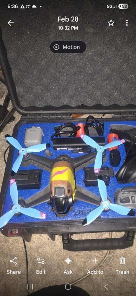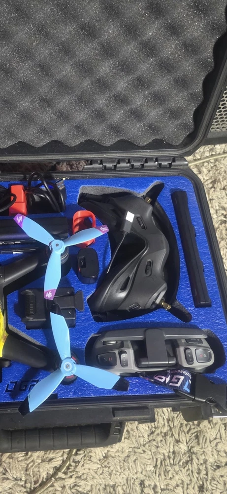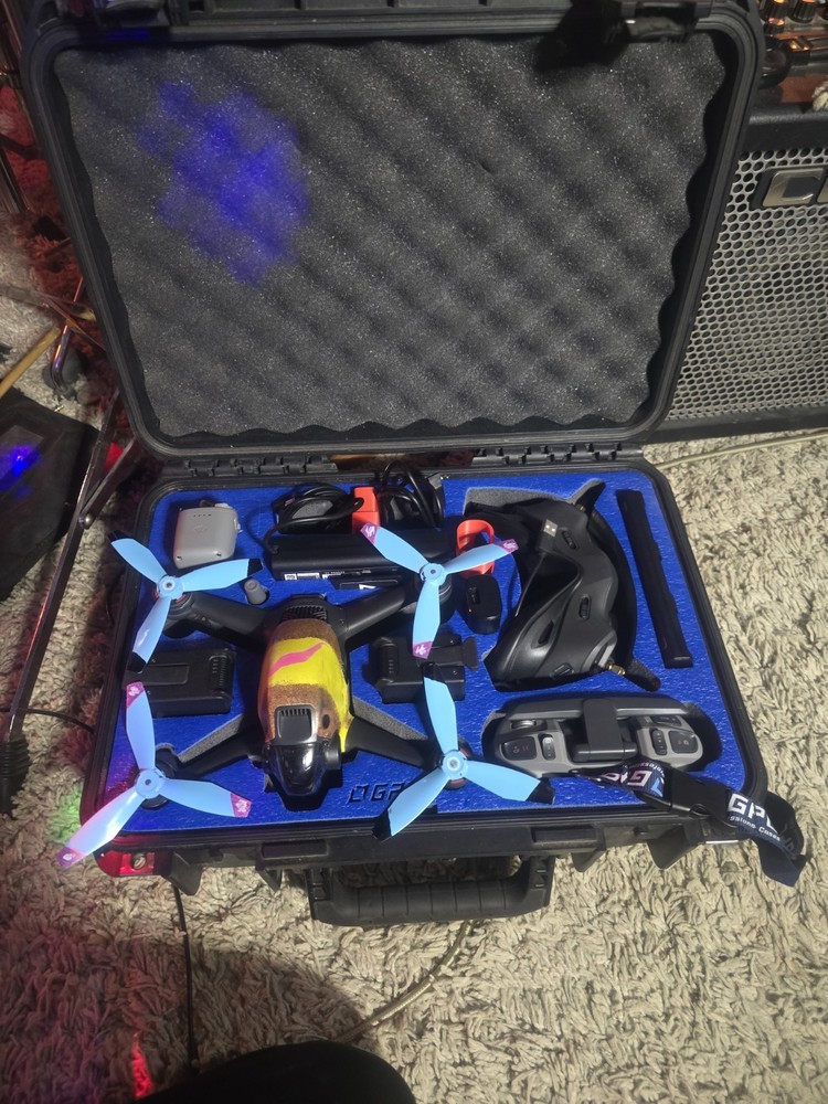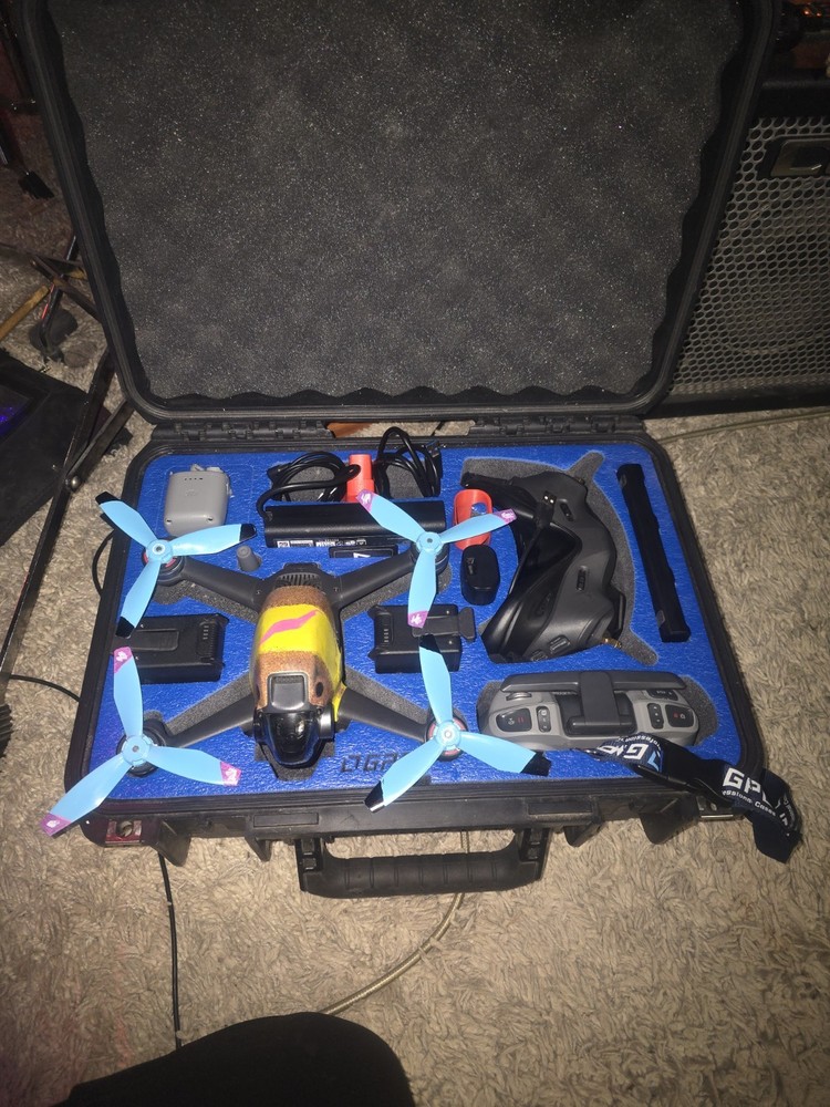 Dji fpv ready to fly. Obstucal avoidance, gps lock, return to home, ceiling hieght 1680 ft. Distance range, 3 to 10 km depending on line of sight, 3 batteries, battery wall charger, charging brick charges all 3 batteries simultaneously, also while charging goggle battery and remote controller. Charge everything at once. Has goggles, goggle cord to battery, controller with extra controller sticks,dji lanyard for controller, also has dji fpv motion controller included in package, goggle and camera lane cleaning brush, gimble protector, e tra set of props and water resistant hard shell case. Hardly flown. Like brand new Never crashed. Everything listed and shown in photos included. Learn how to fly fpv ( freestyle) accomplish loops, inverted flight, dives etc... very fun aircraft. 33mph normal mode, 61mph sport mode, fpv mode 87 mph. 4 k camera.