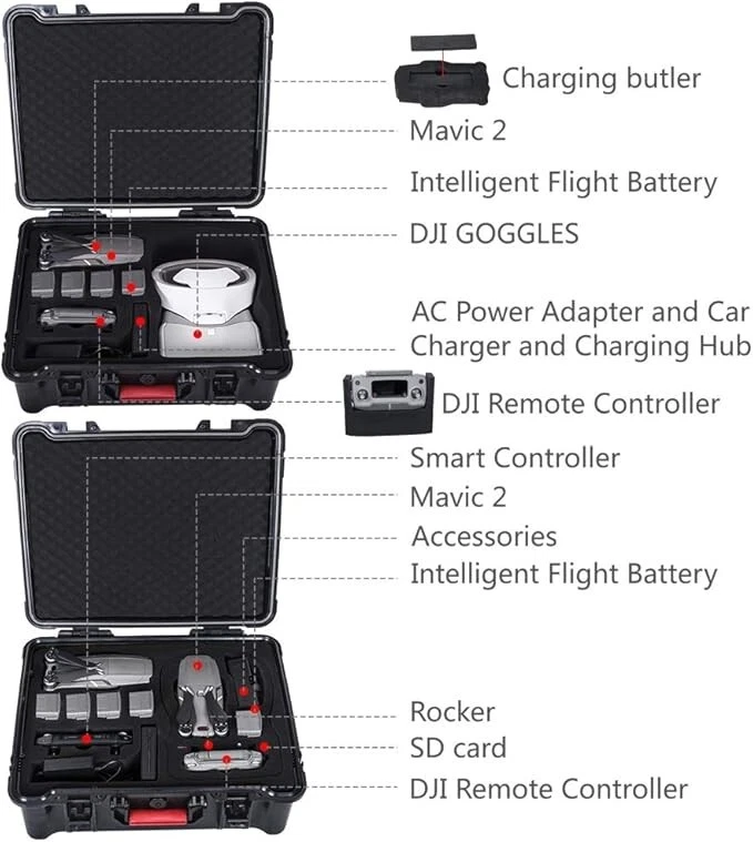 Created with Eselt - Responsive Templates for eBay Sellers Give us a call Send us a message Created with Eselt - Responsive Templates for eBay Sellers Our Store Seller Profile Feedback About us Contact Created with Eselt - Responsive Templates for eBay Sellers Smatree Professional Waterproof 43.9L Carrying Case for DJI Mavic 2 Pro/Zoom - **Precise Customized-Cut**: - Designed to hold both the DJI Mavic 2 Pro/Zoom and DJI Goggles in a single case. - Features multiple compartments for the Mavic 2, DJI Goggles, and other accessories. - Ideal for pilots who own both items and prefer not to carry two separate cases. - **Maximum Protection**: - Constructed from ABS and high-density sponge material. - Offers anti-crash and anti-scratch protection during emergencies. - Tough exterior ensures maximum protection against impacts and drops. - Keeps DJI Mavic 2 Pro/Zoom, DJI Goggles, DJI Smart Controller, and accessories well-organized during travel or transport. - **IP67 Waterproof**: - Waterproof hard shell design. - Provides protection against ocean waves, streams, and rain. - Dust-proof to prevent dirt from entering the drone. - **Travel Carrying Case**: - Can hold: - 1 × DJI Goggles & 1 × DJI Mavic 2 Pro/Zoom drone - OR 2 × DJI Mavic 2 Pro/Zoom drones (without DJI Goggles) - 1 × Smart controller/remote controller - 5 × intelligent flight batteries - 1 × battery charger & charging hub - 2 × adapters - Other small accessories - **Dimensions**: - External: 51cm × 42.5cm × 19.5cm / 20.1" × 16.7" × 7.7" - Internal: 47cm × 37.5cm × 17.5cm / 18.5" × 14.8" × 6.9" Color: Black Item Weight: 12.82 pounds Product Dimensions: 20.1 x 16.7 x 7.7 inches Country of Origin: China Created with Eselt - Responsive Templates for eBay Sellers Links Our Store Seller Profile Feedback About us Contact More items Are you looking for something similar? See our other items! Show more items Contact Give us a call Send us a message