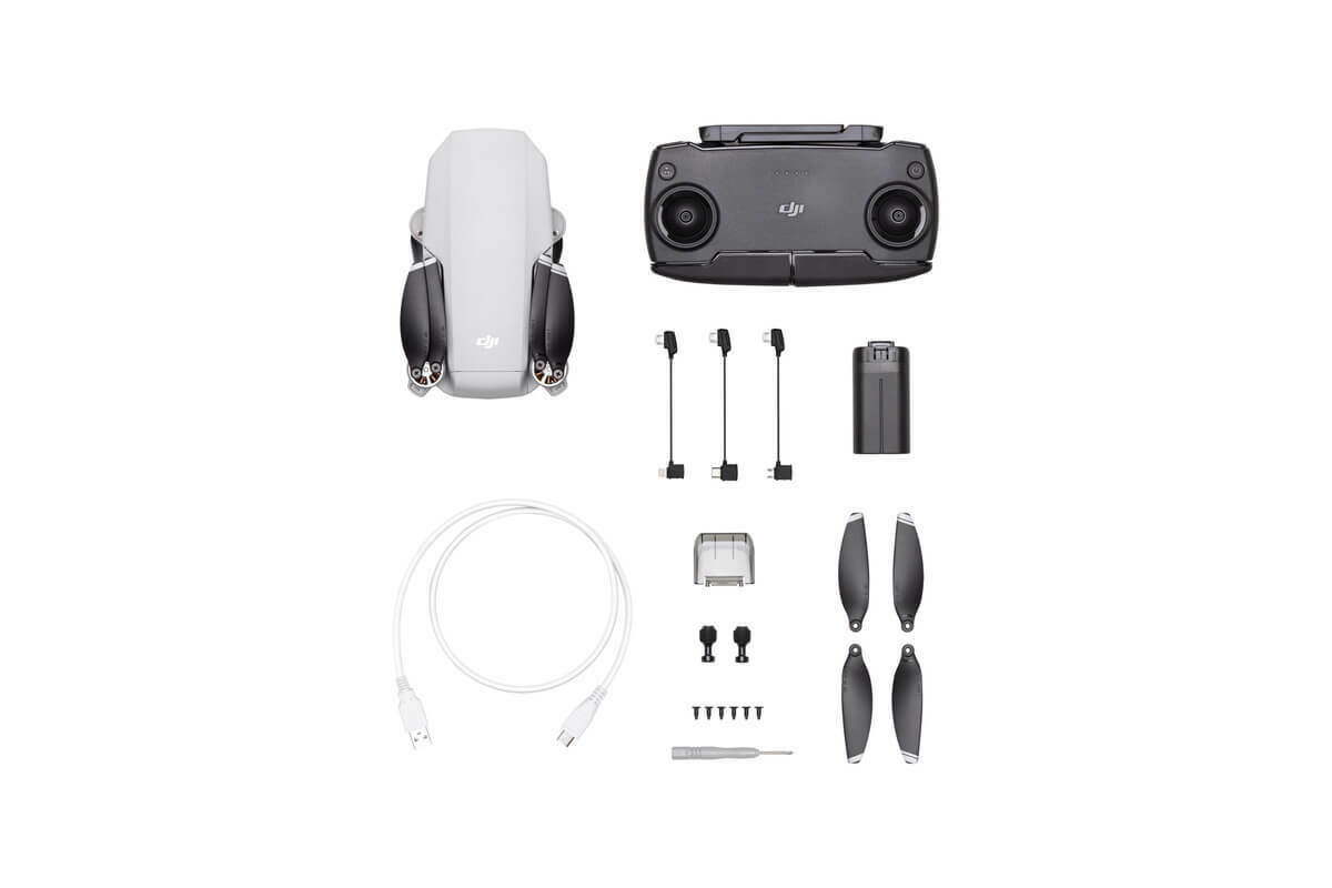 In the Box: Mavic Mini comes with everything you need to get airborne in no time! Inside the box, you will find the following items: Comparison Chart Item Mavic Mini Mavic Mini Fly More Combo Mavic Mini ×1 ×1 Remote Controller ×1 ×1 Intelligent Flight Battery ×1 ×3 Pair of spare propellers ×1 ×3 Micro USB cable ×1 ×2 Gimbal protector ×1 ×1 RC cable (Micro-USB connector) ×1 ×1 RC cable (USB-C connector) ×1 ×1 RC cable (lightning connector) ×1 ×1 Pair of spare control sticks ×1 ×1 Spare screws ×6 ×18 Screwdriver ×1 ×1 360° Propeller Guard / ×1 Two-Way Charging Hub / ×1 DJI 18W USB charger / ×1 Carrying Bag / ×1 Highlights: Edit and Share Instantly By pairing Mavic Mini with the all-new DJI Fly app, you can shoot stunning photos and videos and also edit them all within the app. New to editing? Don’t worry, choose from a variety of templates and background music. Then, when you’re done, share the finished product with your family and friends on social media with just one tap. Stabilized Gimbal Camera With a 12MP camera capable of shooting 2.7K Quad HD videos and a 3-axis mechanical gimbal, Mavic Mini provides ultra-clear, super smooth footage of your everyday adventures. CineSmooth: Ultimate Precision Ensure smoother motion with the all-new CineSmooth mode. Slow down Mavic Mini’s movements when flying in tight or complex spaces for an extra layer of precision and the smoothest footage possible. Become the Star of the Show with QuickShots With complex cinematic moves like Drone, Circle, Helix, and Rocket just a few taps away, Mavic Mini’s QuickShot modes can make you the star of the scene. Once you’ve finished shooting, share the automatically generated short video instantly with friends on social media. Fly with Ease Easy-to-follow flight tutorials built into the DJI Fly app teach you everything you need to know, from how to ensure Mavic Mini’s sensors are calibrated correctly to setting a custom “Home Point” for the Return to Home function. With this intuitive, convenient app, you can go from complete beginner to professional creator in no time! Take Your Adventure Anywhere Weighing just 249 grams, Mavic Mini is extremely light and portable. Due to its lightweight design, Mavic Mini is placed inside the lowest and safest weight class of drones, which means in some countries it may be exempt from certain regulations.