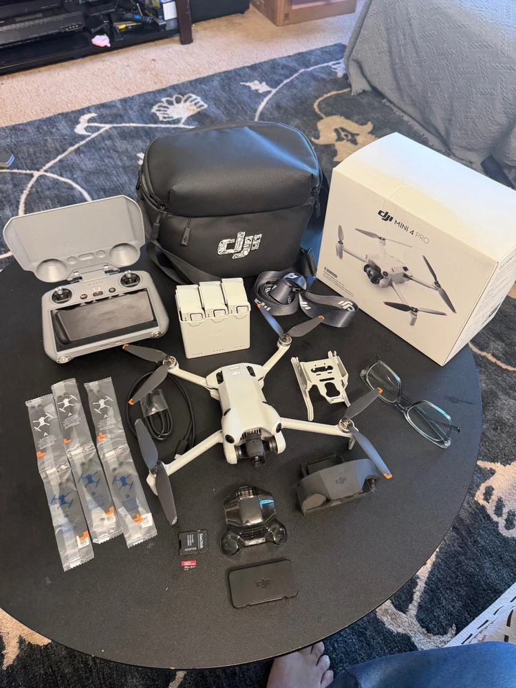 This is a used but like a new DJI Mini 4 Pro Fly More Combo Plus. It includes the DJI RC 2 remote with built-in screen - no phone required to fly. Only used for few hour flights. No issues. Very good and clean condition. The Fly More Combo Plus includes the following: 1 DJI Mini 4 Pro 1 RC 2 Remote Controller 1 RC 2 Remote Controller protector Case 3 Intelligent Flight Battery Plus 1 Two-Way Charging Hub 1 Mini Shoulder Bag 12 Spare Screws 12 Pices of Spare Propellers 1 Gimbal Protector 1 Propeller Holder 1 Type-C to Type-C PD Cable 1 USB-C Cable 3 DJI Original ND Camera Filter 1 Drone Landing Gear 1 Sandisk 256 GB micro SD card 1 DJI original strap for hanging 1 Original Box