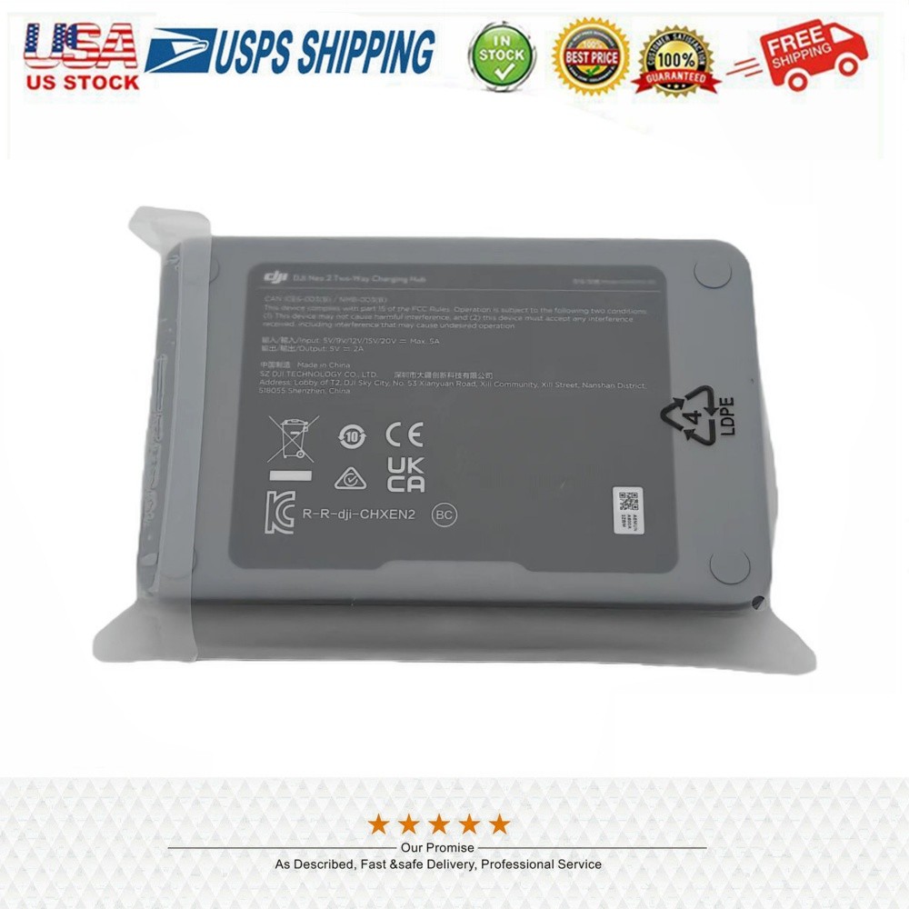 DJI Neo 2 Two-Way Charging Hub – Intelligent Battery Charger The product is new but in bulk packing and without original packing. Stores and charges batteries; with the DJI 65W Portable Charger, it can fully charge 3 smart flight batteries simultaneously in just 68 minutes*. With at least one battery stored, it can act as a power bank, using the remaining battery power to charge devices such as goggles or mobile phones. * Charging time is based on experimental conditions at 25°C. Actual charging time may increase due to higher ambient temperatures or differences in mains voltage in different areas. ** The number of batteries that can be charged simultaneously depends on the charger's wattage. A charger with a wattage greater than 45W can charge three batteries simultaneously, a charger with a wattage between 30W and 45W can only charge two batteries simultaneously, and a charger with a wattage less than 30W can only charge batteries sequentially from highest to lowest charge. Please refer to the charging protocols supported by your charger. What is included: 1x Charging Hub as pictures NOTE: Please make sure what you need are the right models as the descriptions and pictures (CL966 ).