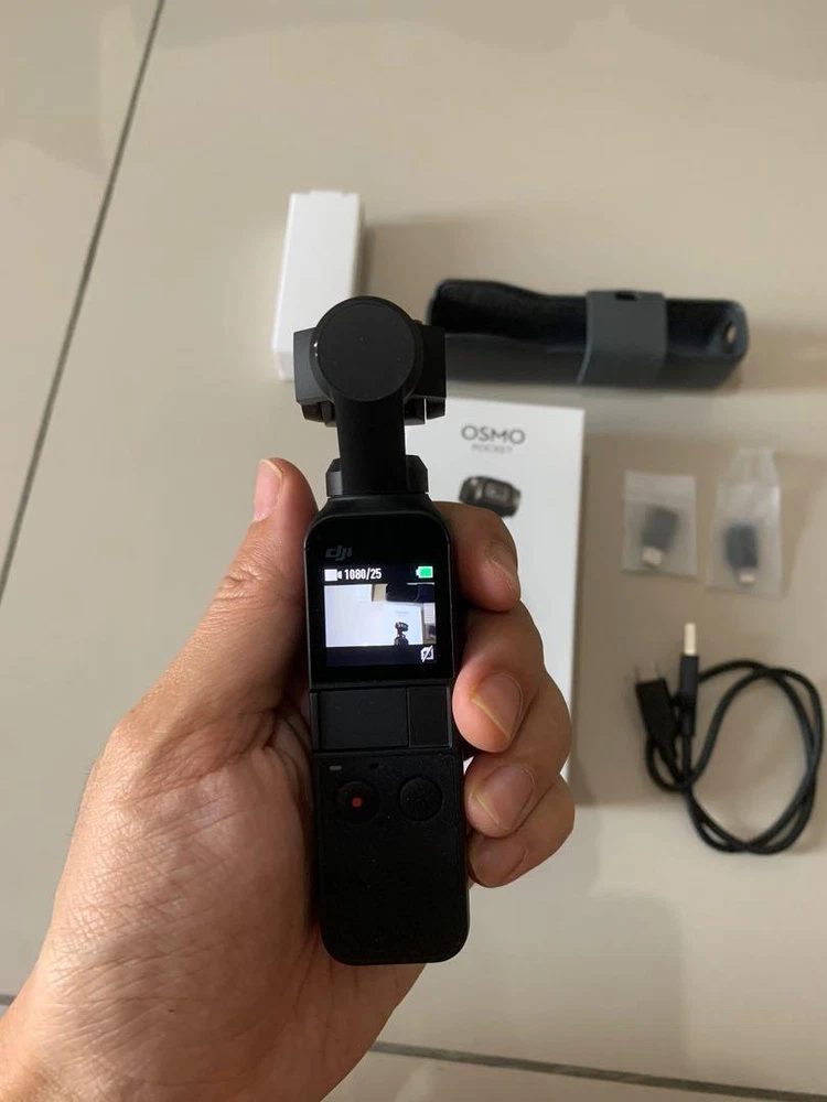 The DJI Osmo Pocket 1 Gimbal is a lightweight gimbal stabilizer and 4K camera combination that is compact enough to carry wherever you go. Weighing just over four ounces and measuring only 4.8" high, this all-in-one unit features 3-axis stabilization to smooth out your movements. The Osmo Pocket 1 incorporates a 1/2.3" sensor and a wide f/2.0, 80° angle-of-view lens to record up to 4K60 cinematic video and 12MP still photos on up to a 256GB microSD card. Unlike a similarly sized smartphone, the candy bar-sized Osmo Pocket 1 offers intelligent functions like Active Track, FaceTrack, and Motionlapse to create compelling, creative effects. Choose between 180° and 3 x 3 panoramic shots to capture wide landscape vistas. The FPV mode provides a selfie perspective, and NightShot can be used to capture moonlit or low-light scenes. DJI Osmo Pocket First Generation This handheld camera is designed for ease of use and is ideal for a range of photography and videography needs. With its compact design and stabilizing features, the DJI Osmo Pocket 1 is perfect for capturing stunning shots and videos without worrying about shaky footage. What's Included? Osmo Pocket 1 *1 Osmo Pocket 1 Protective Cover *1 Android Phone Adapter(Type-C) *1 iPhone Adapter(Lightning)*1 Exquisite Gift Box *1 USB Cable *1