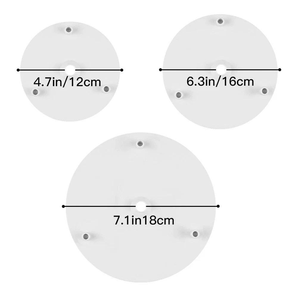 3 Tier Cake Separator Plates and 9 Pieces Plastic Cake Dowel Rods Set, for tiered cake construction and Stacking(12cm,16cm,18cm),enough quantity to meet your needs, You can use scissors to cut it to the desired length, suitable for tiered cake construction.Ours is an upgraded version, more robust,made of food plastic, smooth surface, non-and no odor Features: 1. Upgraded version, more robust 2. The set contains all the accessories you need to make a layered cake, cake separator plates and dowel rods 3. 3-layer cake divider are12cm/4.7inch, 16cm/6.3inch, 18cm/7.1inch 4.plastic cake dowels rods are 24cm/9.5inch. You can use scissors to cut it to the desired length Package included: 1PCS x Cake Separator Plates-12cm 1PCS x Cake Separator Plates-16cm 1PCS x Cake Separator Plates-18cm 9PCS x Plastic Cake pillar 【You can get】3 Tier Cake Separator Plates and 9 Pieces Plastic Cake pillar Set,enough quantity to meet your needs, suitable for tiered cake construction. 【Sake dowels rods】There are 9 pieces pillar set,each plastic cake dowels rods are 24cm/9.5inch. You can use scissors to cut it to the desired length, suitable for the construction of a layered cake. 【Cake Separator Plates】The dimensions of the 3-layer cake divider are12cm/4.7inch, 16cm/6.3inch, 18cm/7.1inch, Ours is an upgraded version, more robust,made of food plastic, smooth surface, non-and no odor 【Easy to Use】 Insert the plastic cake pillar into the cake separator plates,cut the pillar to the length you need, insert it into the cake, and continue to stack the second and third layers cake. 【100% SATIFACION】 We pride ourselves on the quality of our products and are responsible for the purchase behavior of our customers.If any issues about products , please feel free to us, We will solve it for you in the first time.