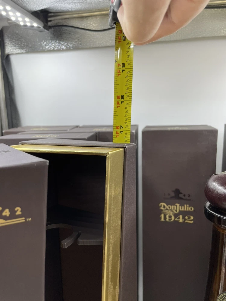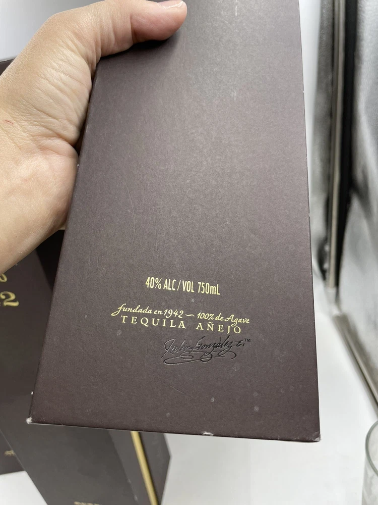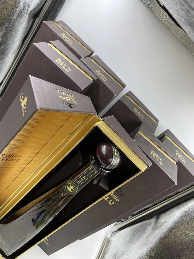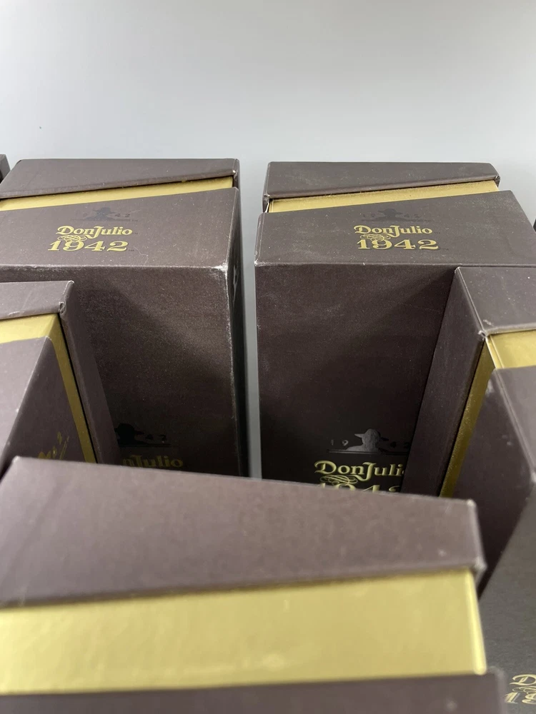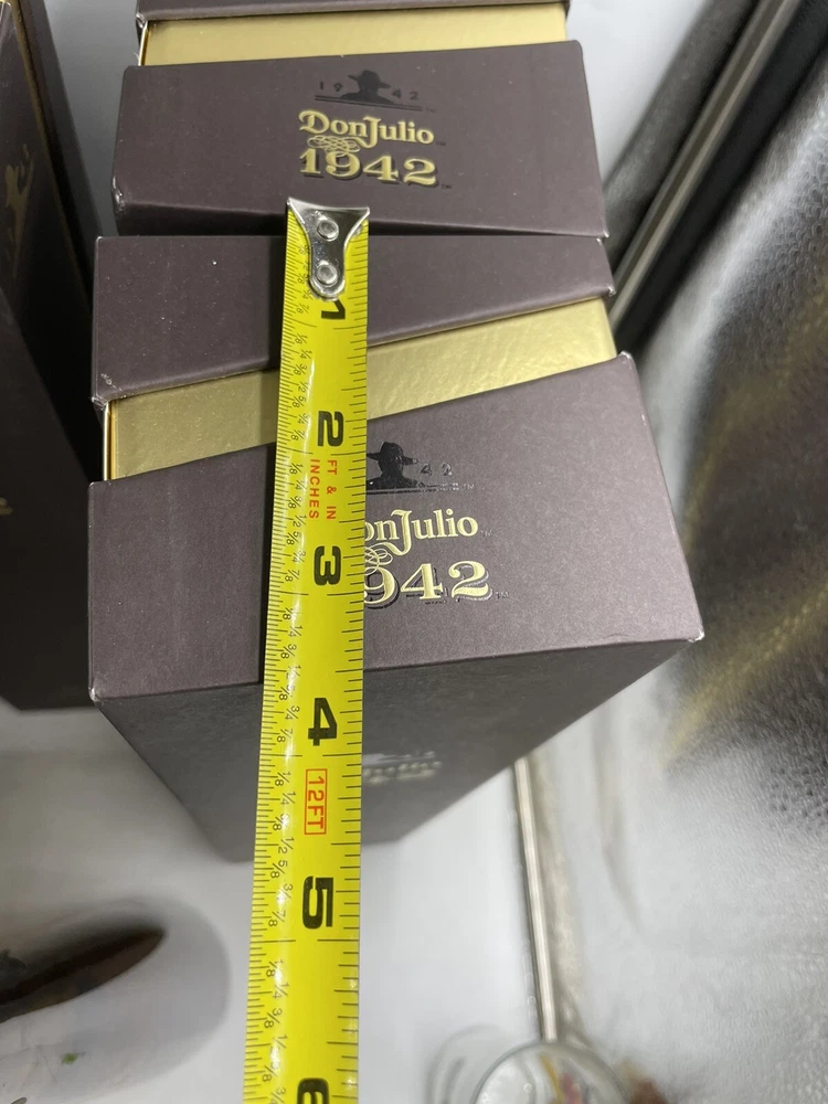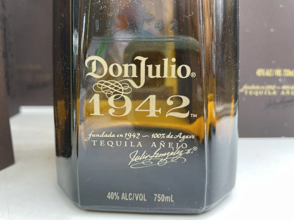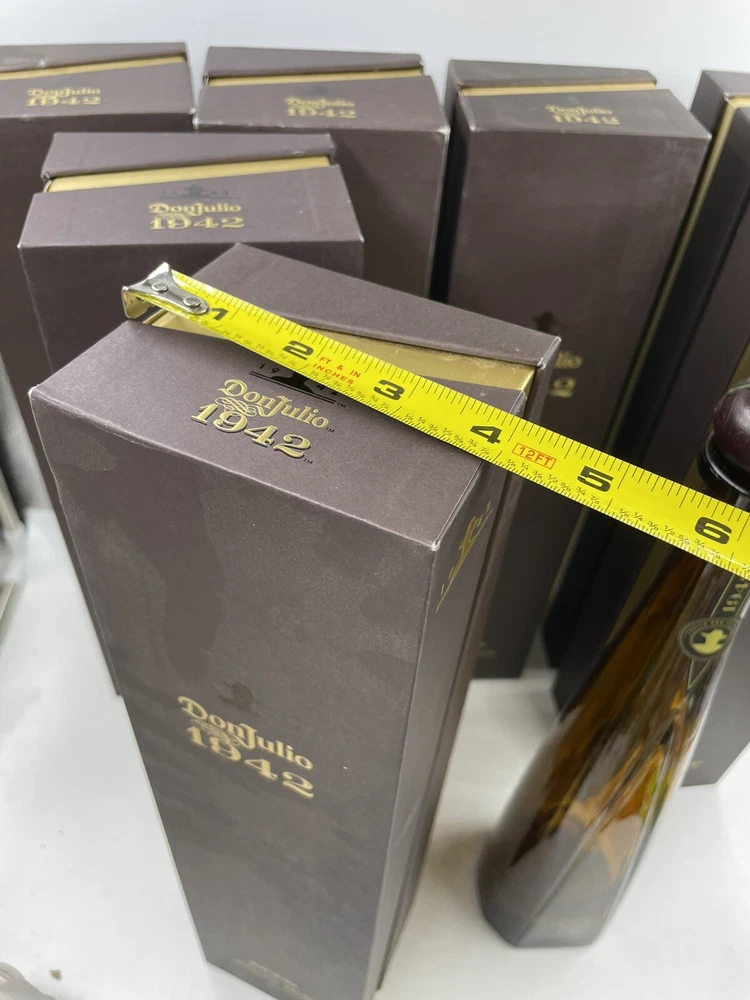 This empty bottle of Don Julio Anejo 1942 Tequila comes with its original box. The bottle is 750 ml in size and was made in Mexico, the home of tequila. The brown color and intricate design of the bottle make it a beautiful addition to any display. Whether you are a fan of Don Julio tequila or simply appreciate the artistry of liquor bottles, this item is sure to impress. Some boxes have some minor dings. Please see all pictures The bottle is being sold as a collectible and is not intended for consumption. It is in very good condition. Add this unique piece to your collection today.
