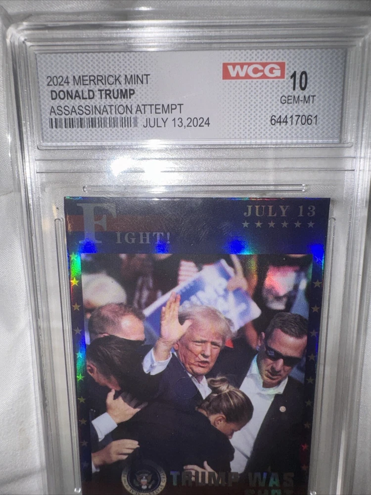 This official trading card features a rare photo of the 45th US President, Donald Trump, and is a must-have for any collector. The card is made of high-quality polyflex and card stock materials, with a standard size that makes it easy to store and display. The card is graded WCG 10, ensuring its authenticity and quality. It features the title "Assassination Attempt" and showcases the iconic character of Donald Trump. This non-sport trading card is an original, licensed reprint that was manufactured in the United States. It is a great addition to any collection and a perfect way to commemorate the presidency of Donald Trump.